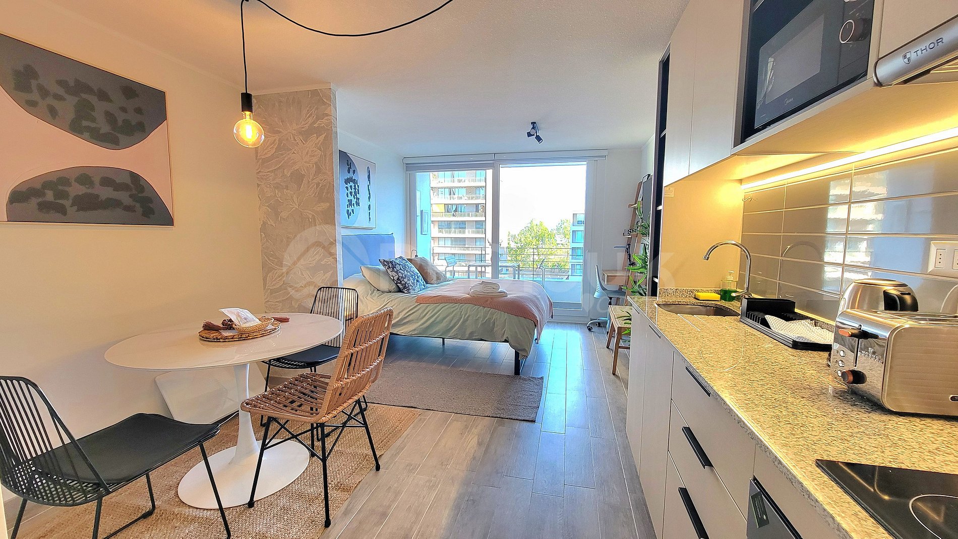 Experience a cozy stay in this functional apartment, perfect for couples visiting Santiago. Located in a modern building (Year 2024) in the quiet Club Hípico neighborhood, it offers all the amenities to enjoy a stay, whether for tourism, work, or relaxation.