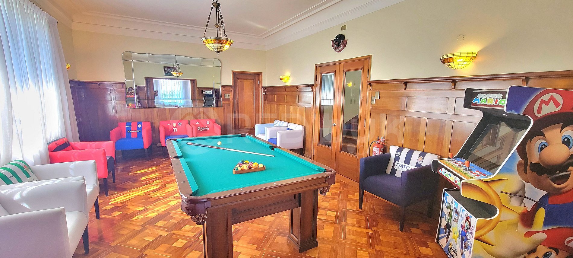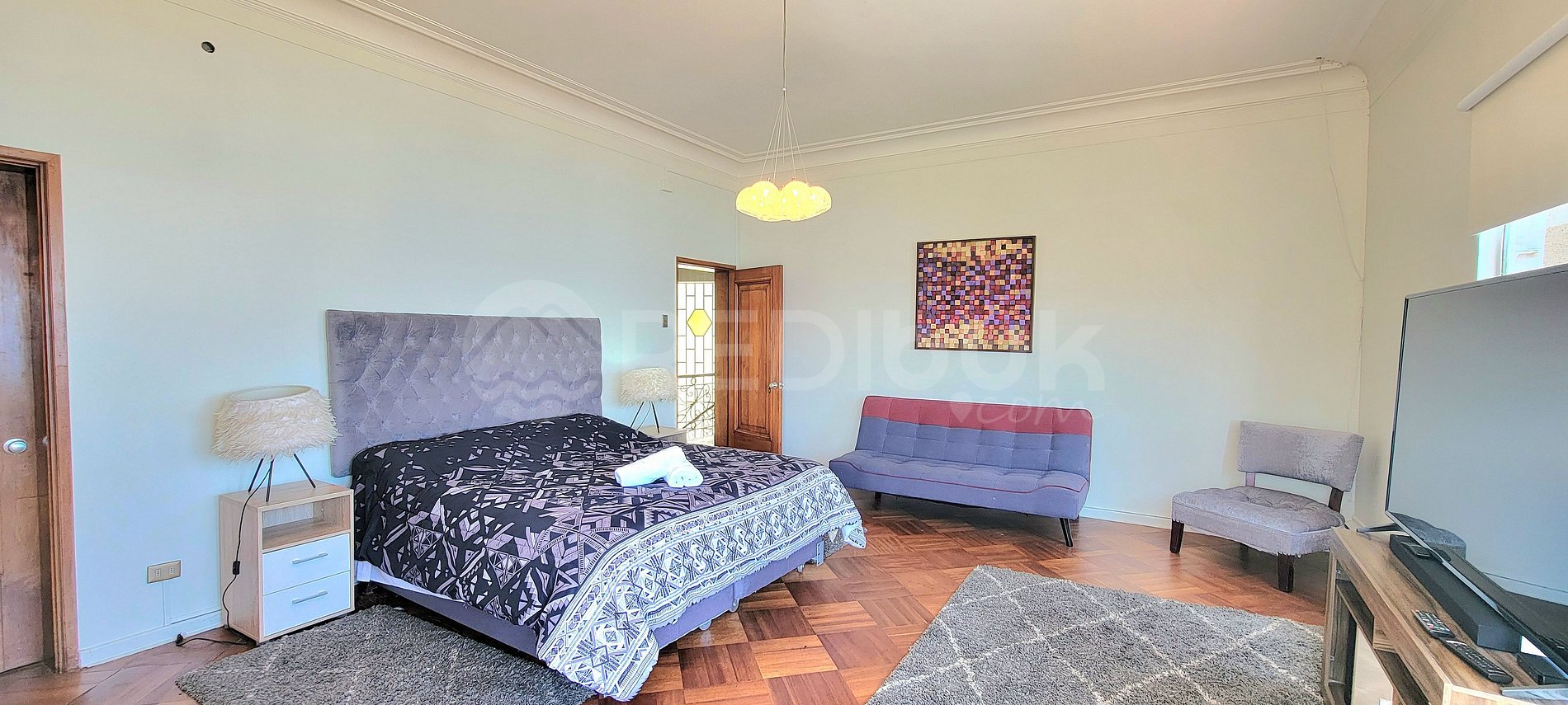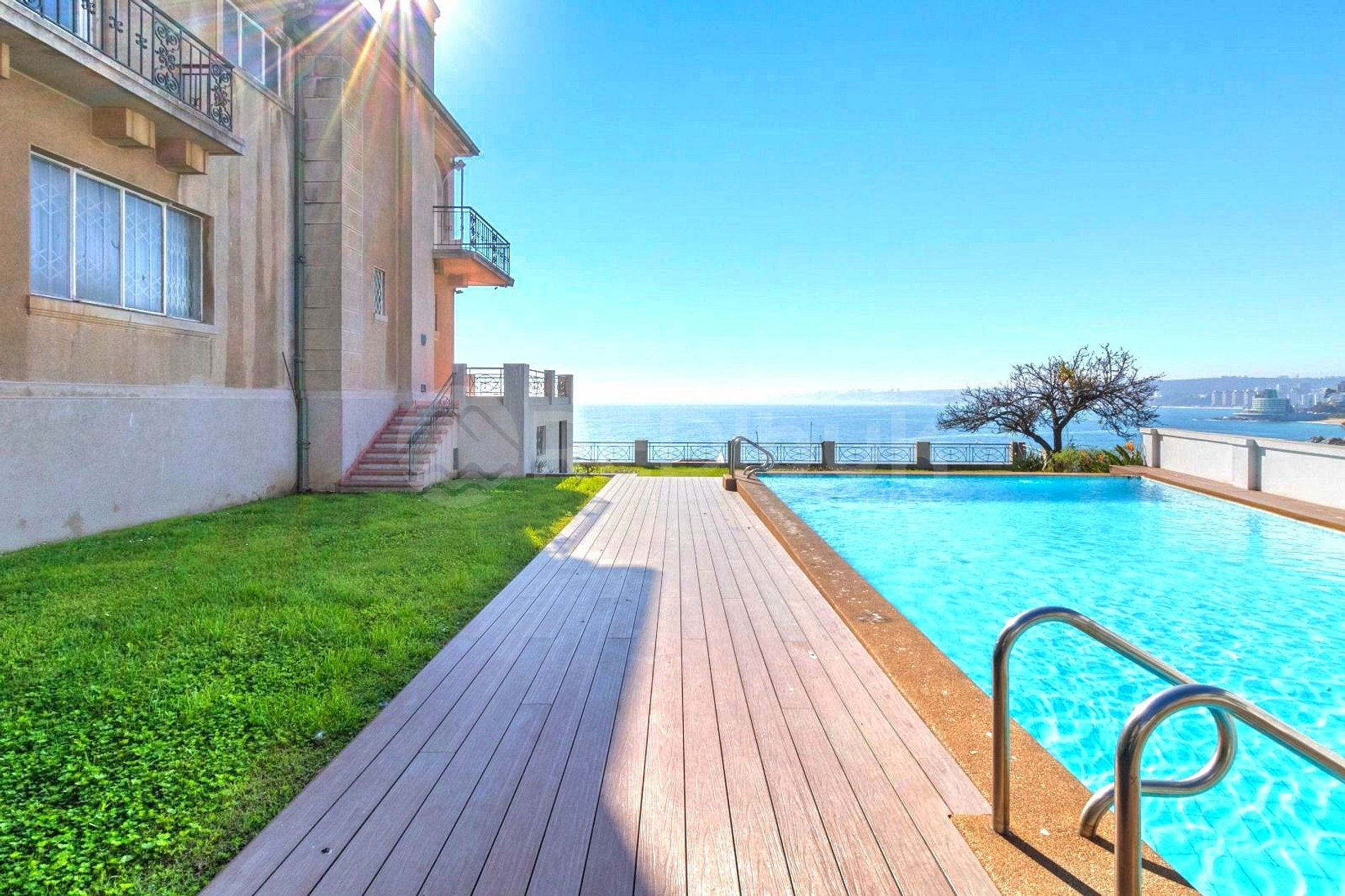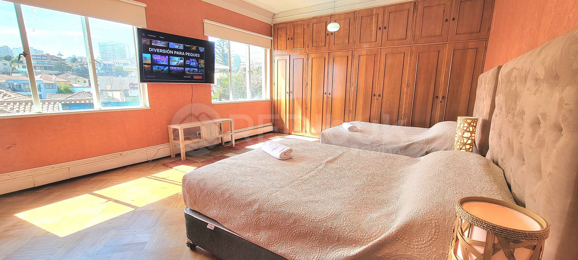 50s-style house in Recreo, Viña del Mar, designed by the renowned Italian architect Arnaldo Barison, with 5 spacious bedrooms, accommodating 15 people in 8 large beds. It features a closed barbecue area, large garden, terrace set, big swimming pool, game room with pool table, arcade games, board games, and all spaces offer an incredible view of the Pacific Ocean.The house has everything you need to enjoy an amazing vacation with your family.