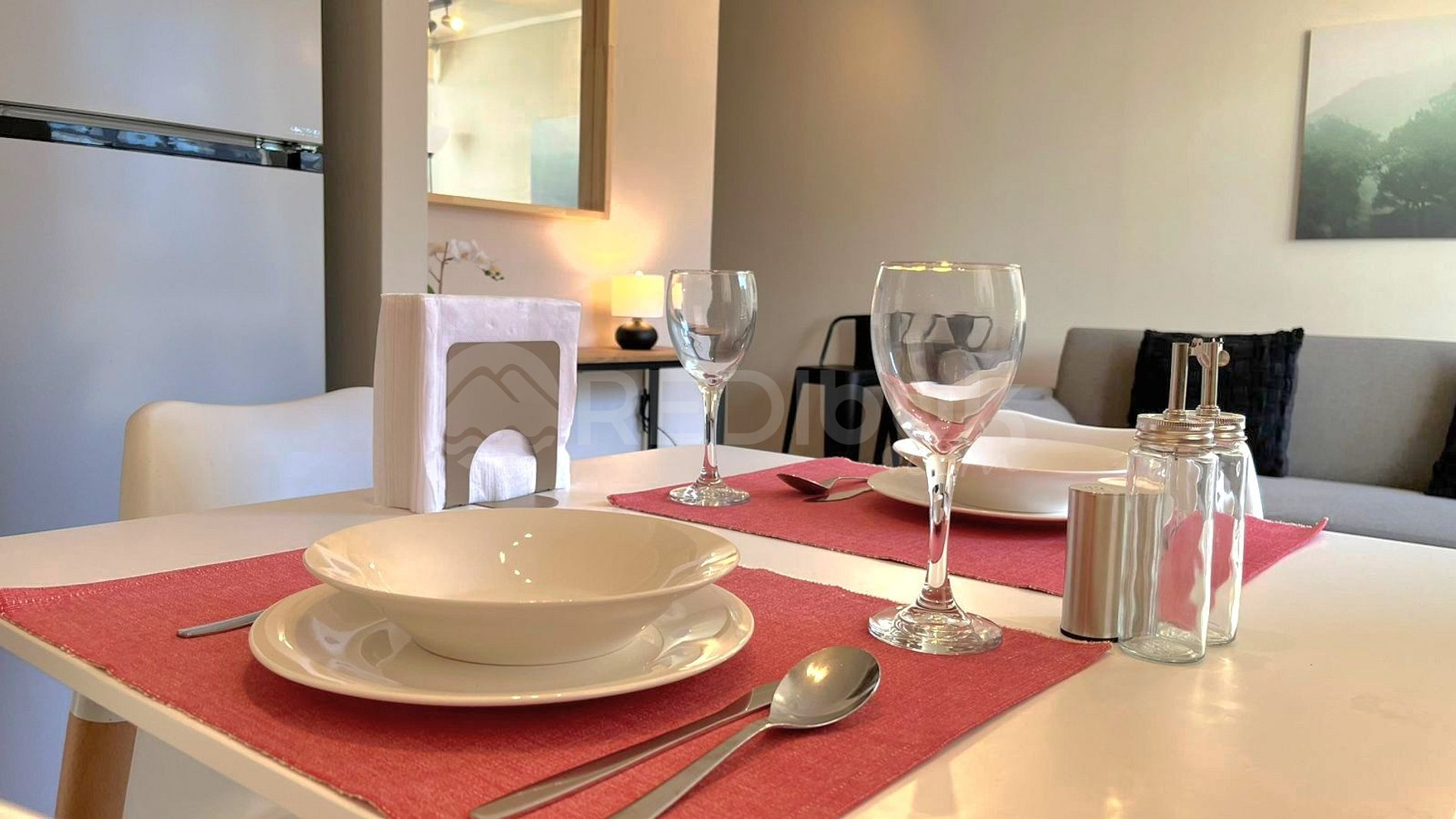 The space has 1 bedroom with a double bed, 1 private bathroom, a fully equipped open-plan kitchen, and a bright, modern living-dining area with a sofa bed. Every corner is designed to make you feel at home, whether for a few days or weeks.