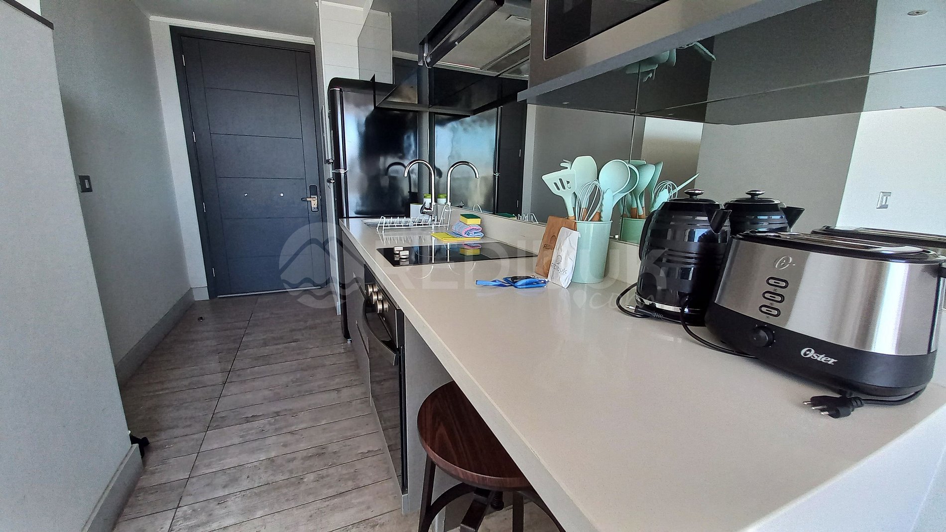Departamento tipo Estudio, se encuentra en el piso 25, cuenta con un baño, cocina americana, terraza y todo el equipamiento necesario para una estadía cómoda y sin preocupaciones.