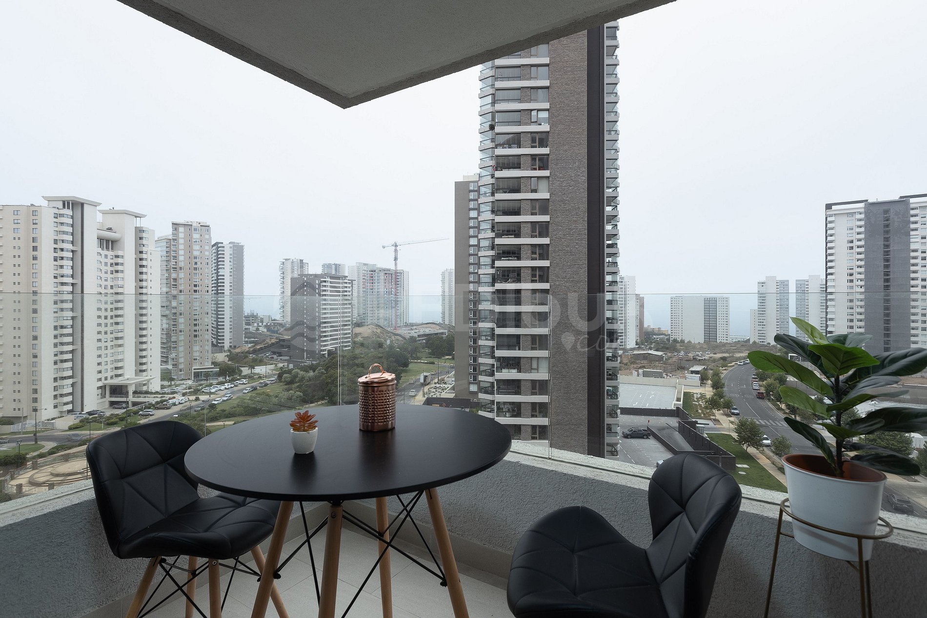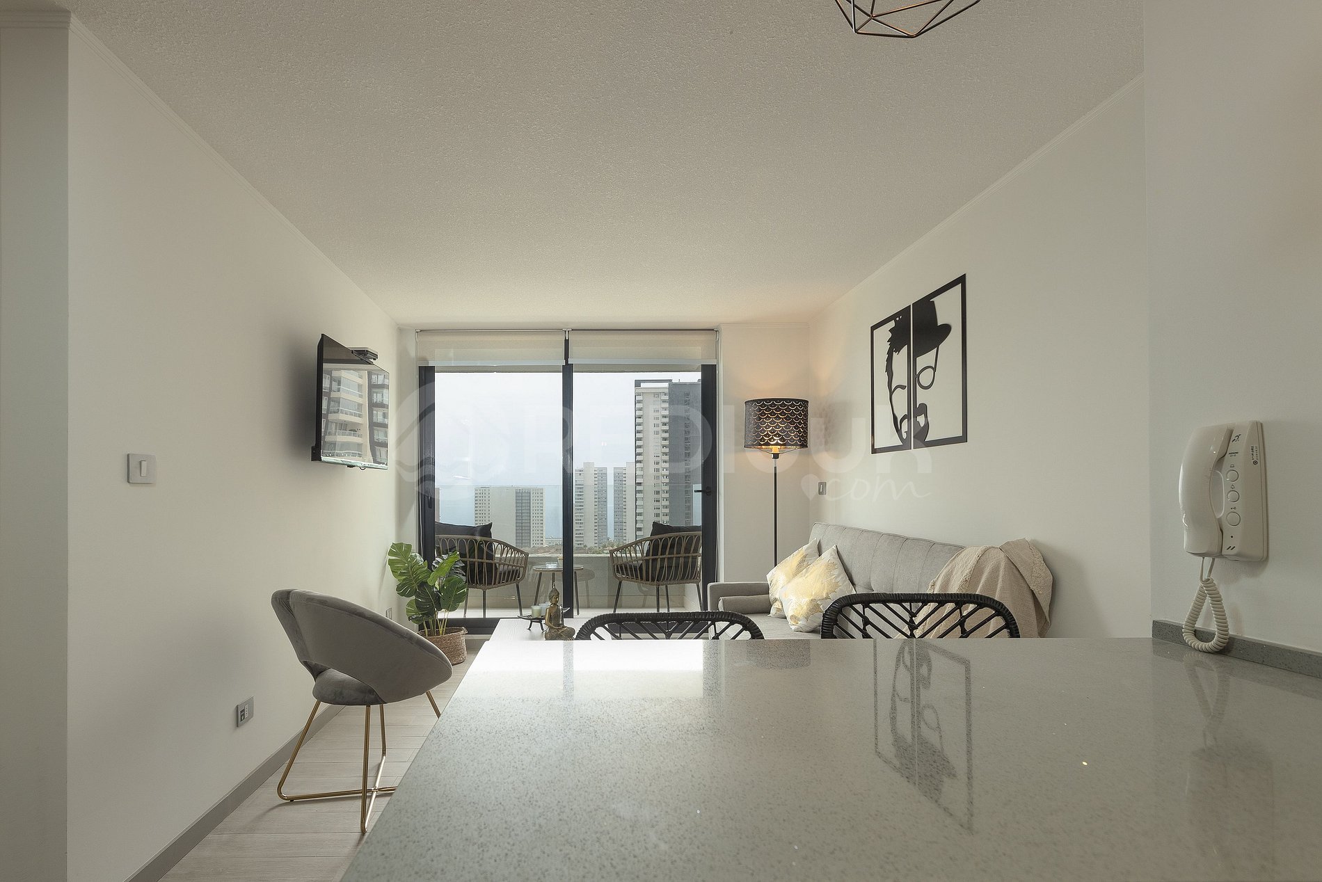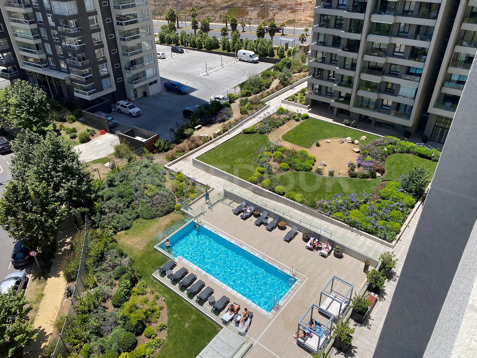 New Eco Costas Concón project year 2023, very good facilities, steps from the Concón dunes, large park to go for a walk and watch the sunset by the sea, outdoor pool, gym and laundry area. The apartment is on the 10th floor, which allows you to have a partial view of the sea, as well as beautiful sunsets. It has two bedrooms, a bathroom, living room, kitchenette, terrace and all the necessary equipment for a comfortable, quiet and worry-free stay.