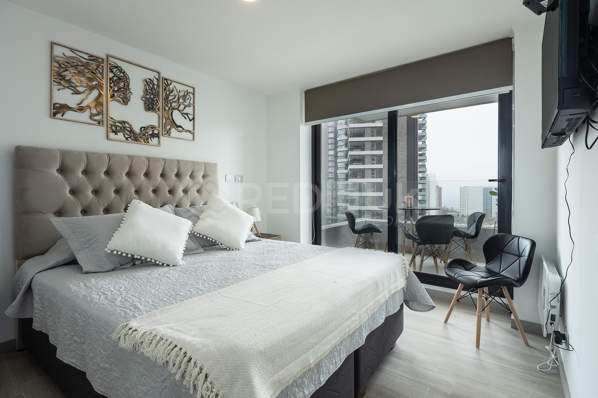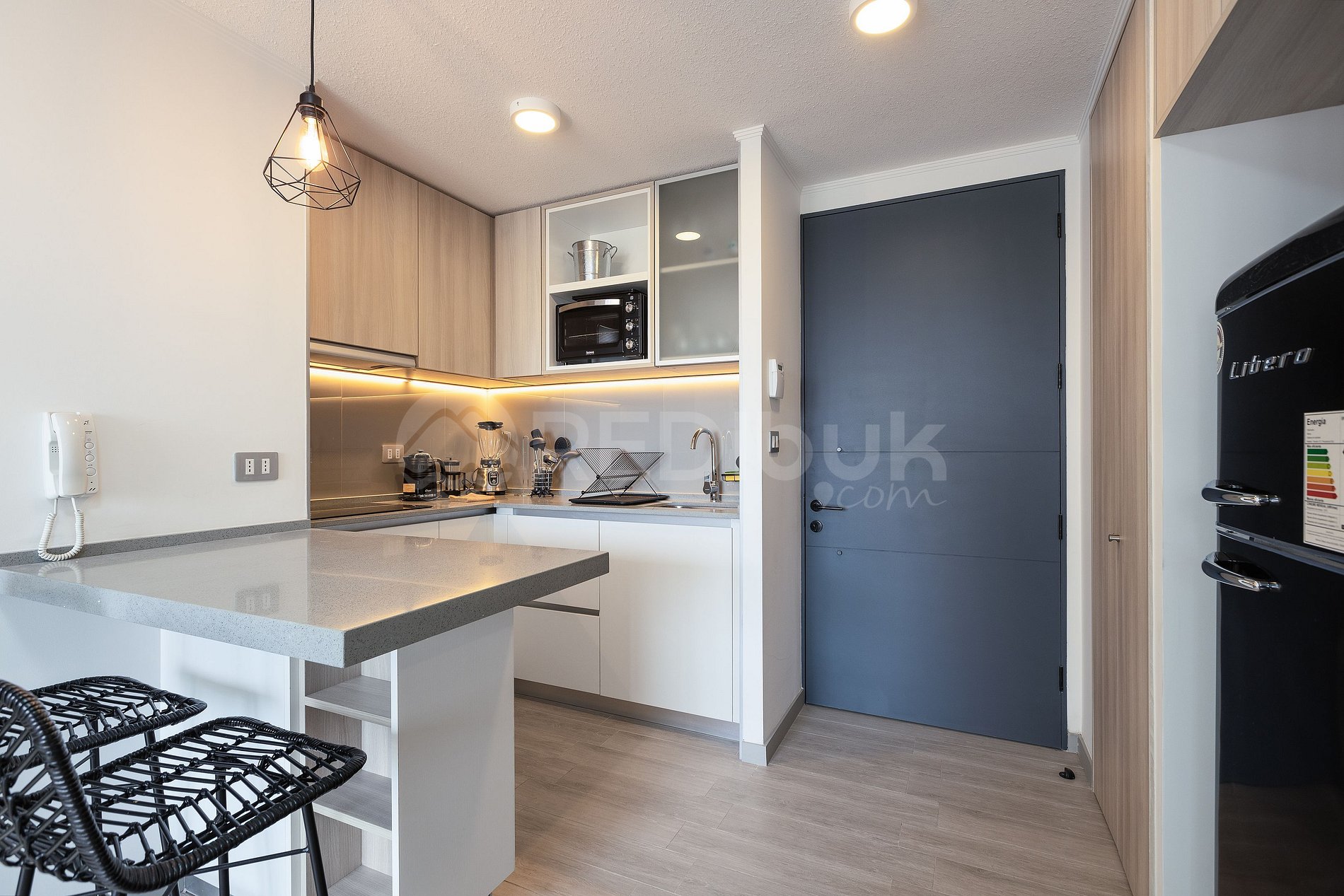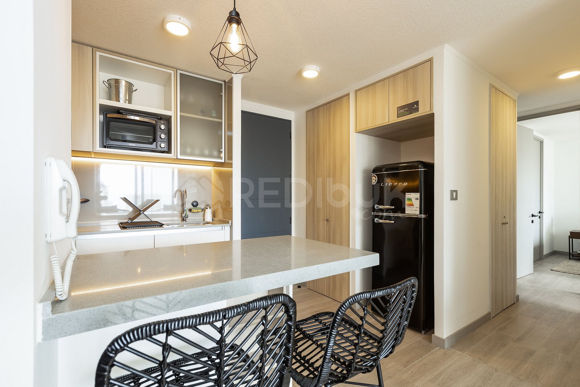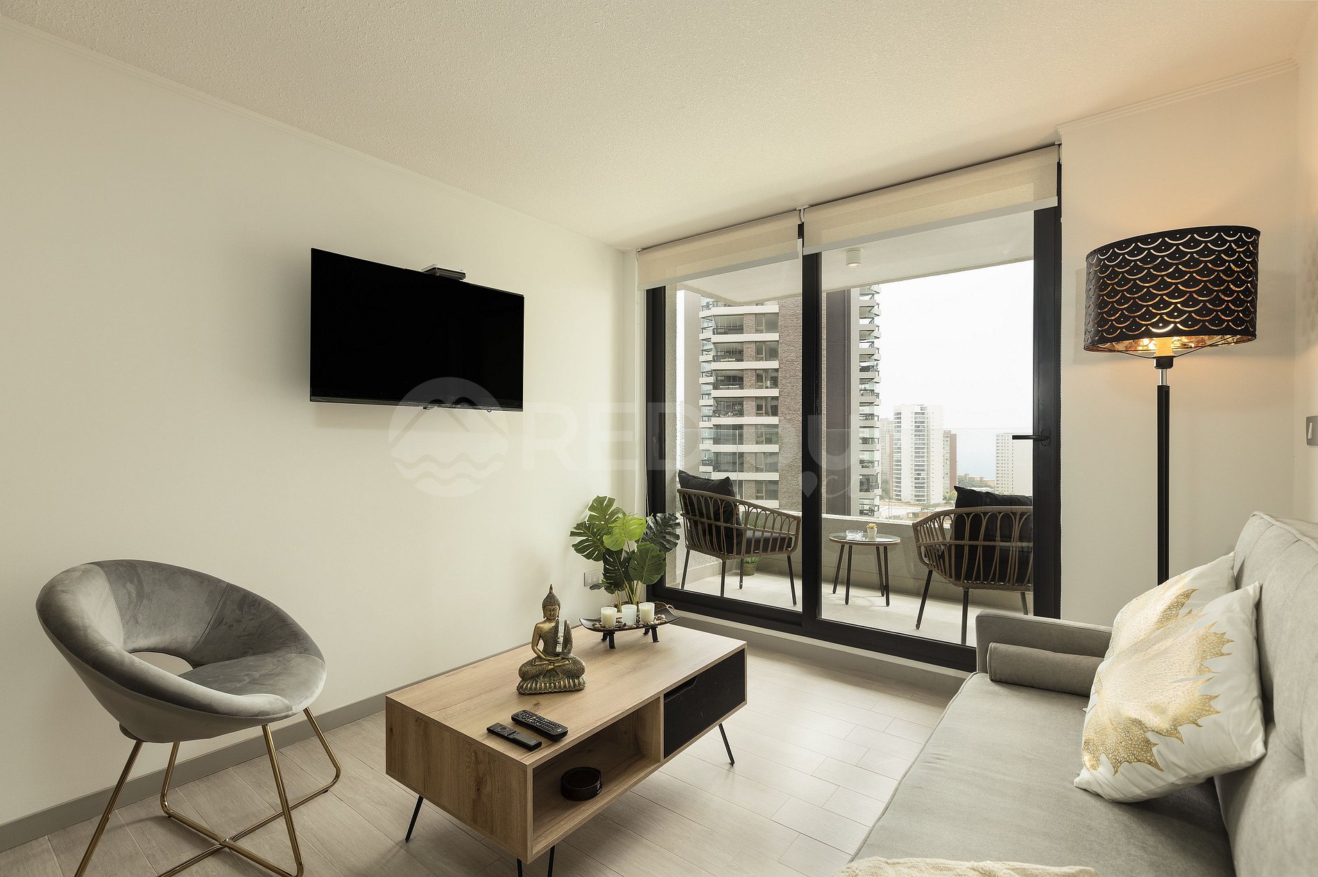 New Eco Costas Concón project year 2023, very good facilities, steps from the Concón dunes, large park to go for a walk and watch the sunset by the sea, outdoor pool, gym and laundry area. The apartment is on the 10th floor, which allows you to have a partial view of the sea, as well as beautiful sunsets. It has two bedrooms, a bathroom, living room, kitchenette, terrace and all the necessary equipment for a comfortable, quiet and worry-free stay.