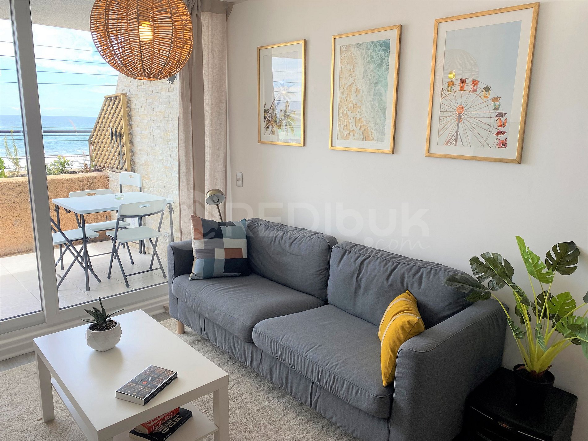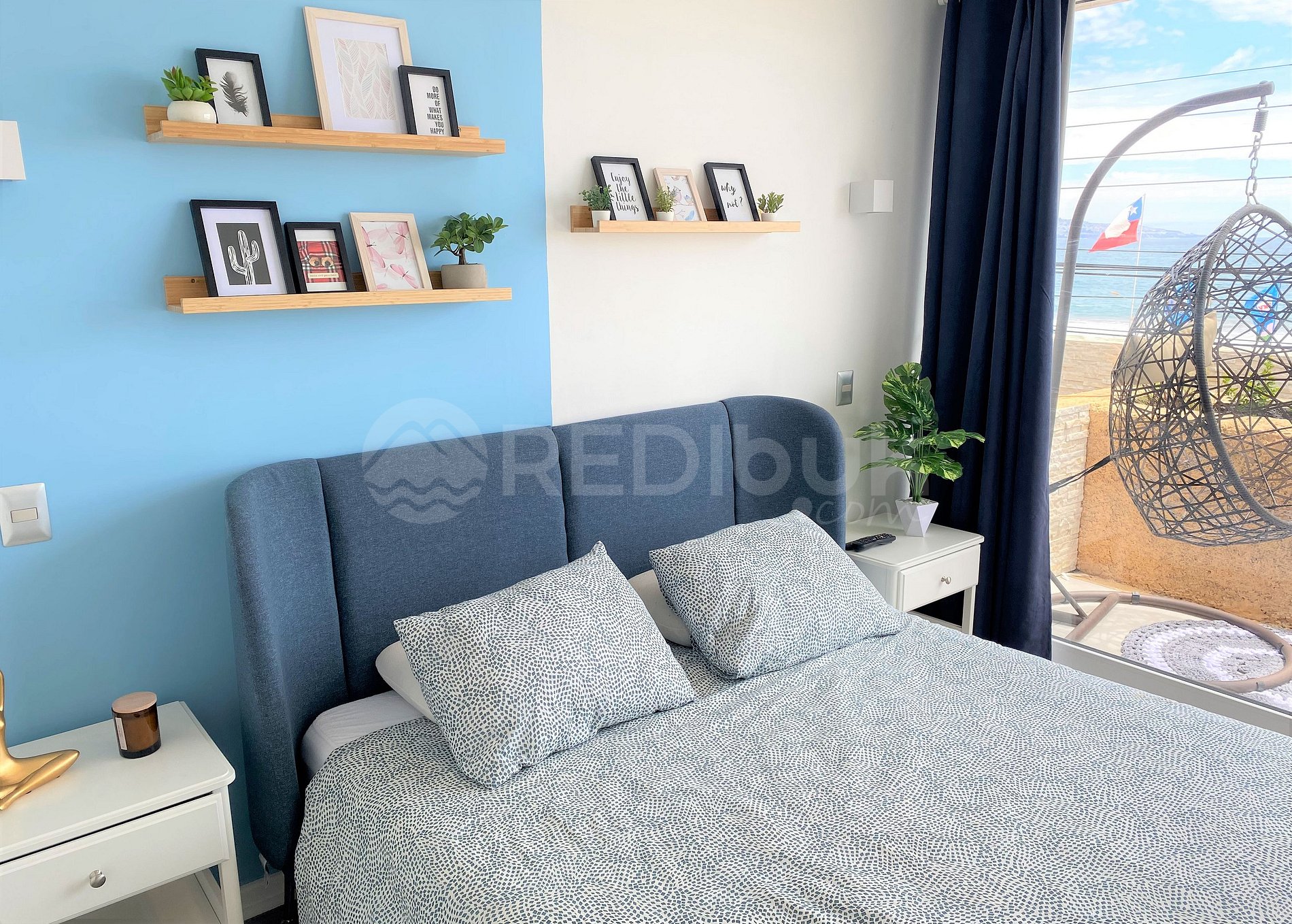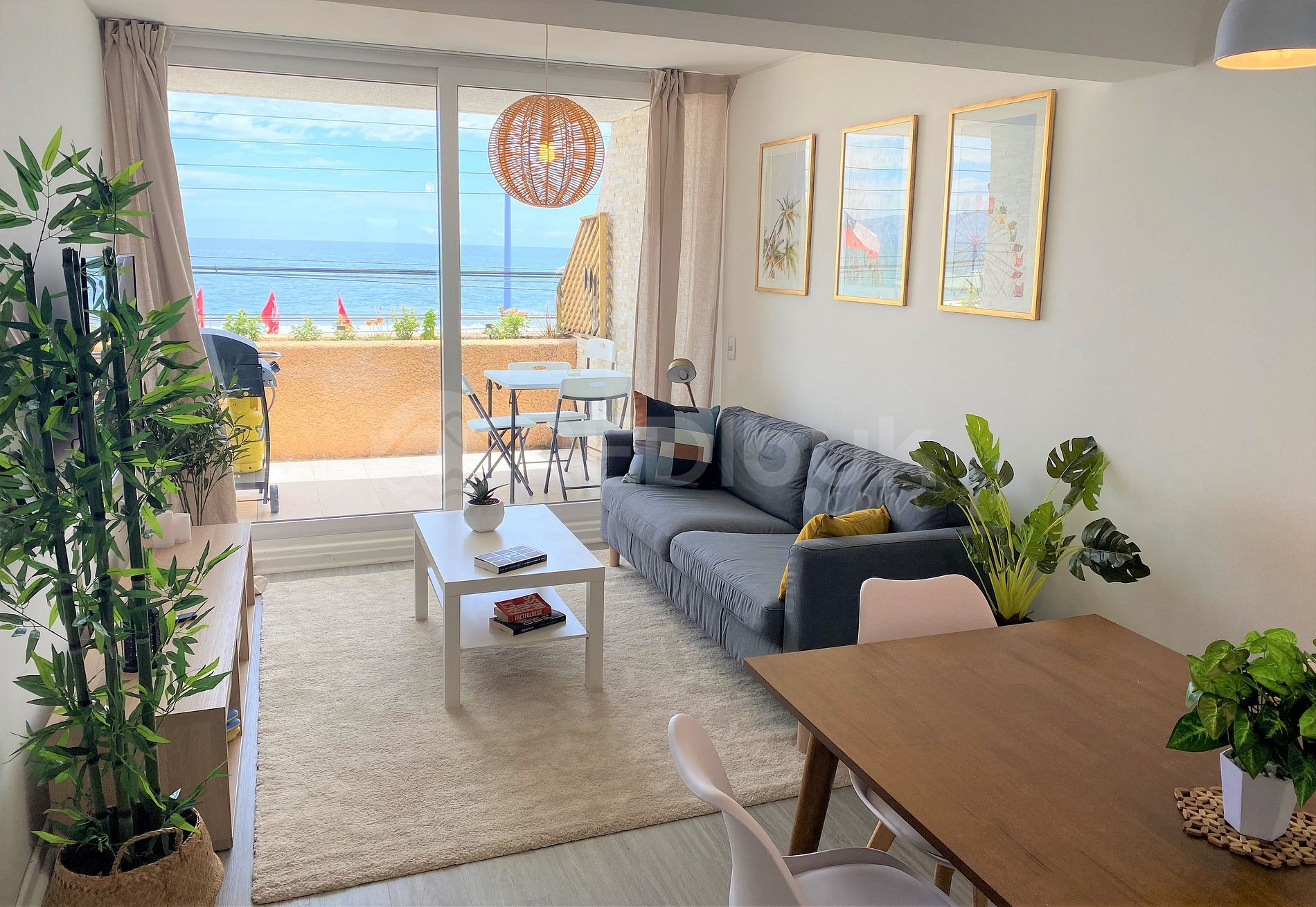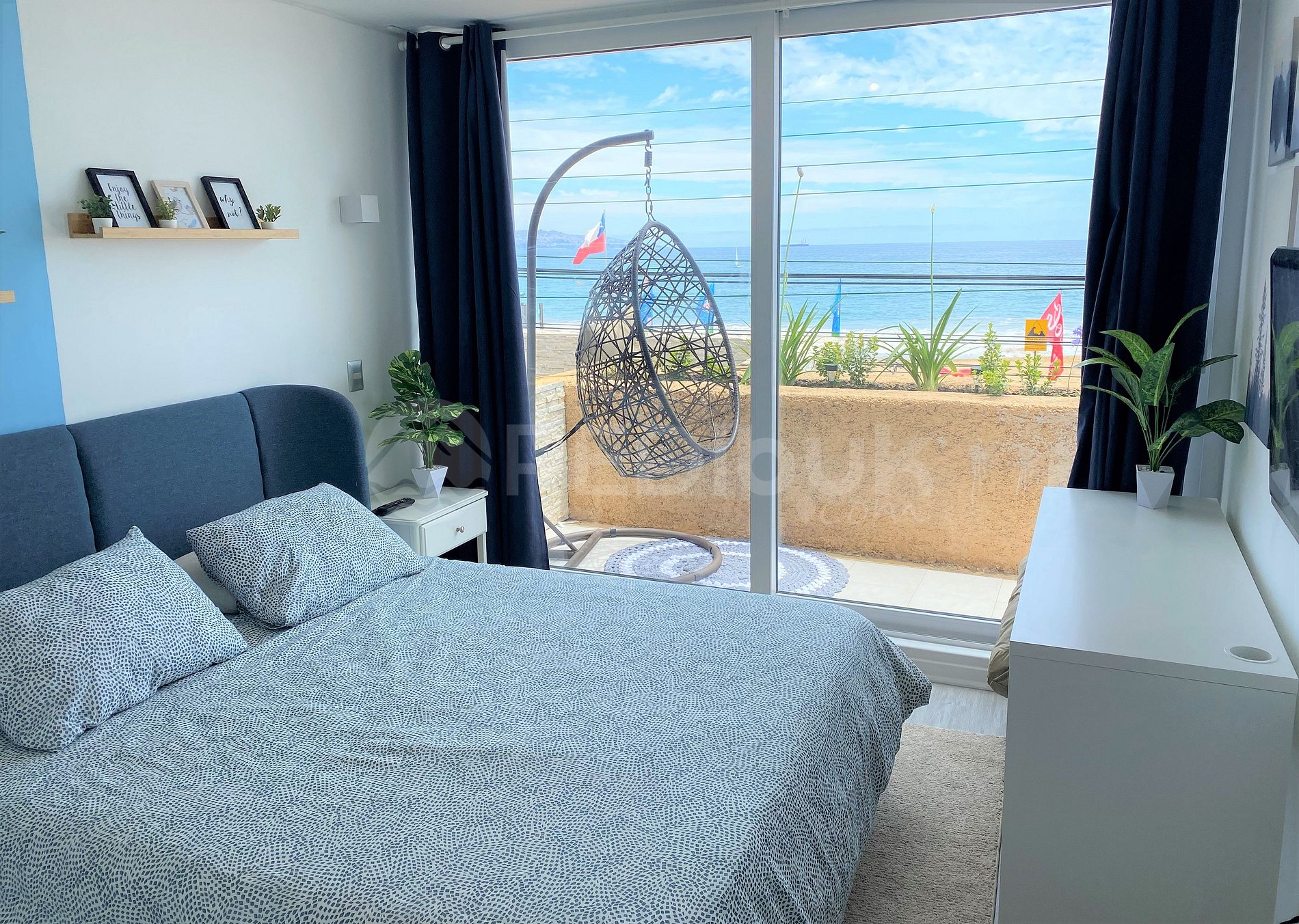 The apartment has three rooms, each one with incredible decoration, which makes the space very cozy. It has windows with thermopane, electric heating to temper the large space. It is located between sectors three and four of Reñaca, steps from the beach. Its terrace is spacious and has a grill.
