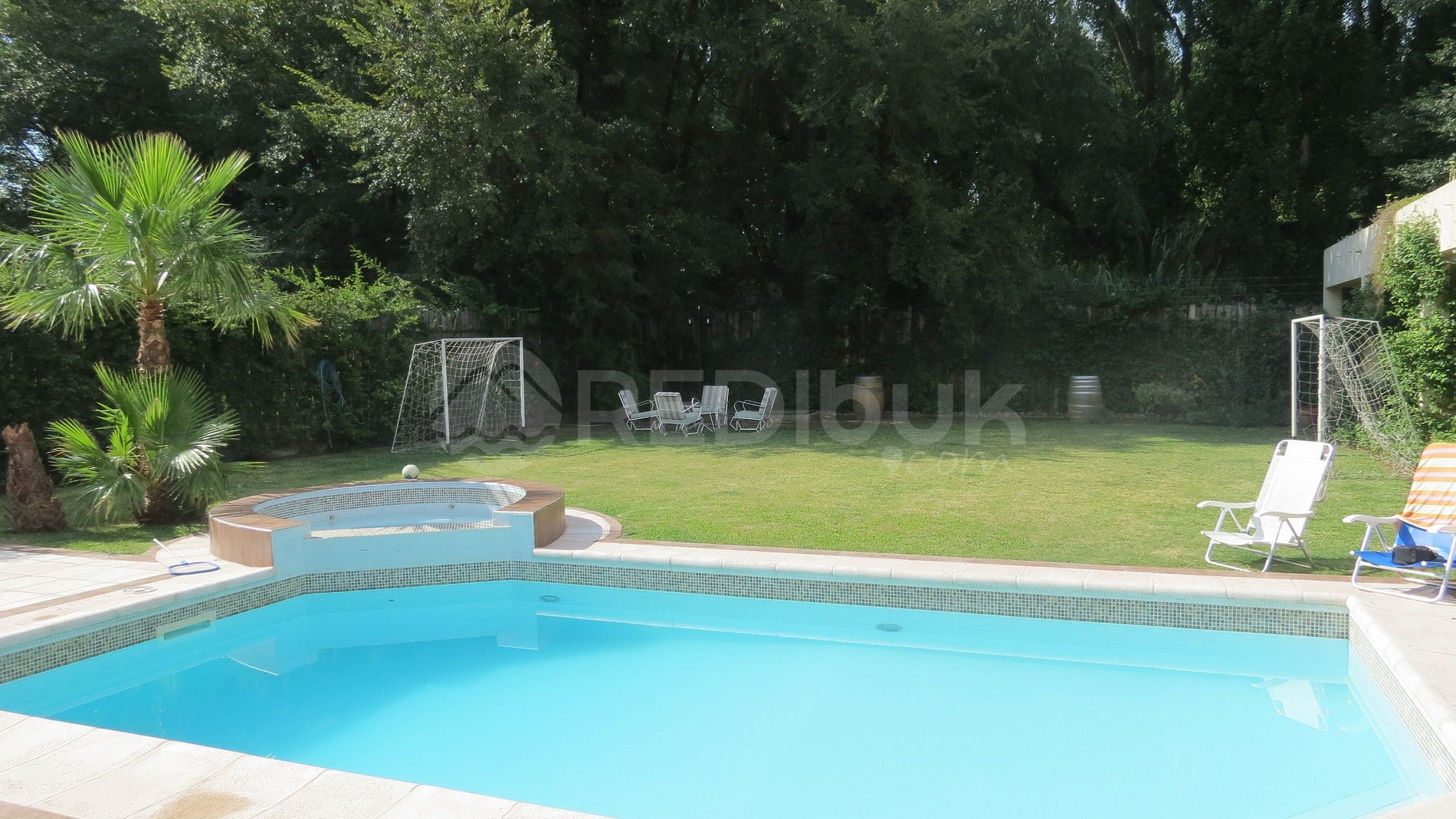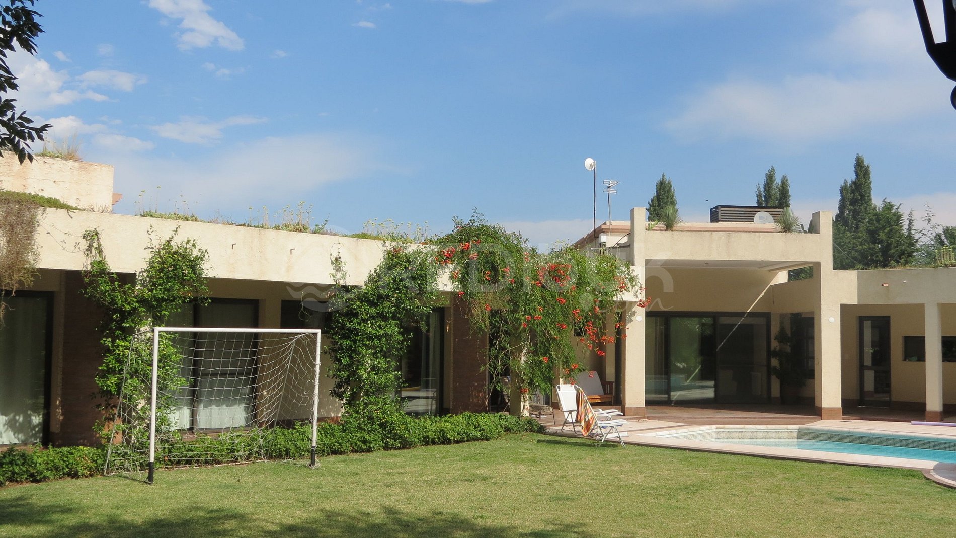 The house has a large parking lot and patio with a wonderful green environment. Its large pool will make your stay more entertaining and comfortable.