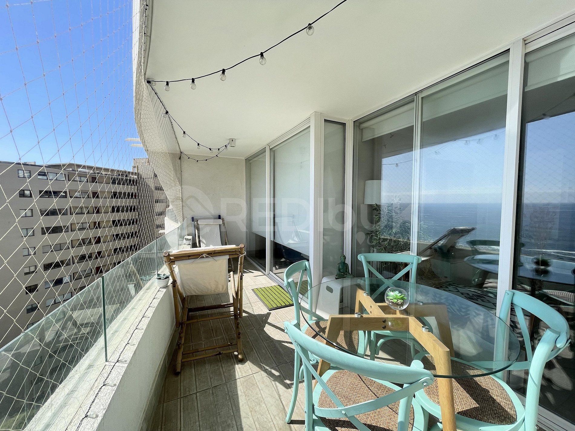 Hermoso y excelente decorado departamento, con una hermosa vista al mar y una amplia terraza con reposeras para descansar viendo el atardecer o simplemente disfrutar del aire marino en toda época del año.