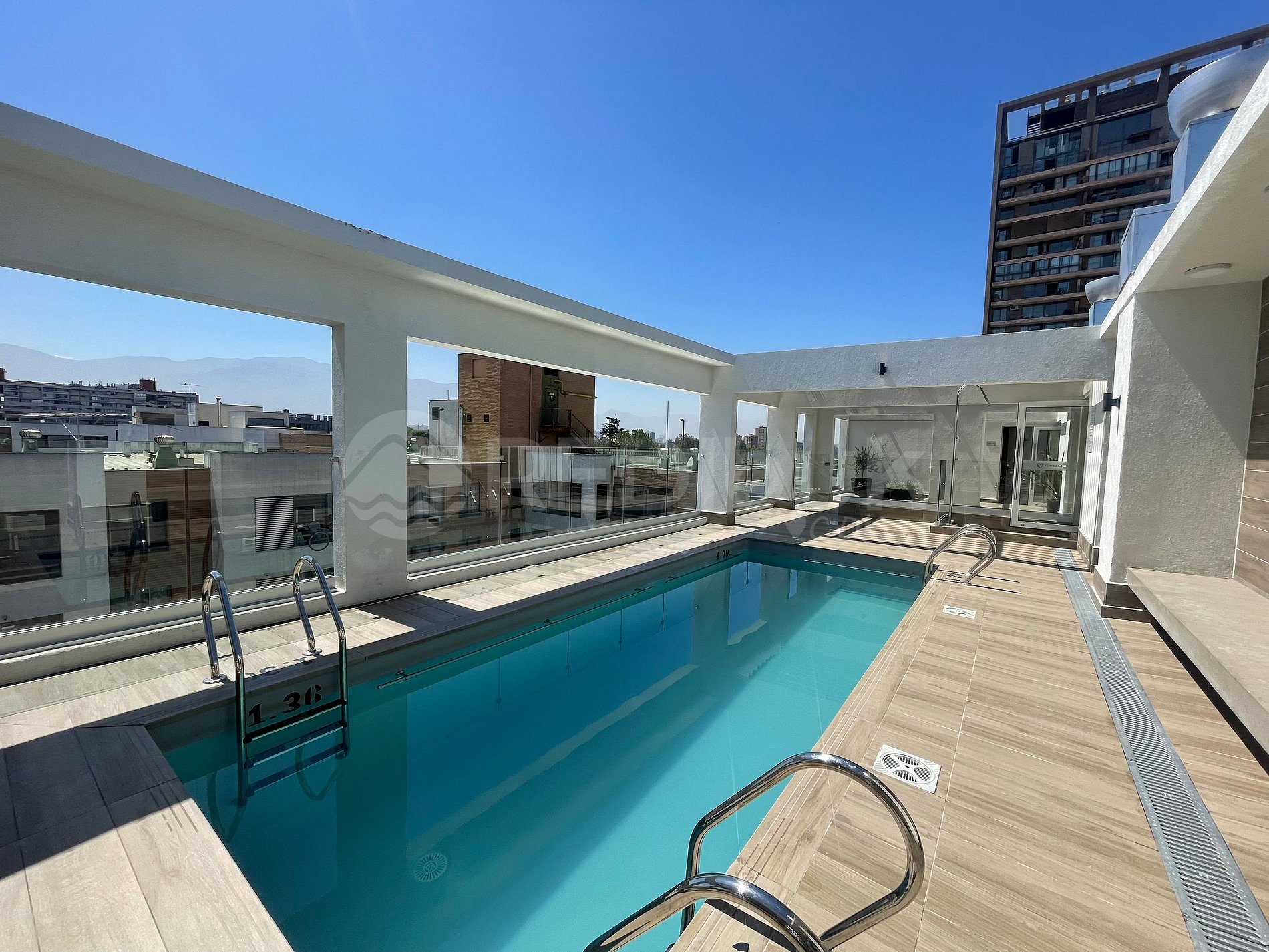 It has everything you need to feel at home: Wi-Fi, coffee maker, TV, comfortable bed, terrace, and a fully equipped kitchen. An ideal space to relax after a day of exploring the city. It features a rooftop pool with sun all day long (summer), perfect for those looking to cool off in the Santiago heat. On Mondays, like most pools, it is closed for maintenance.