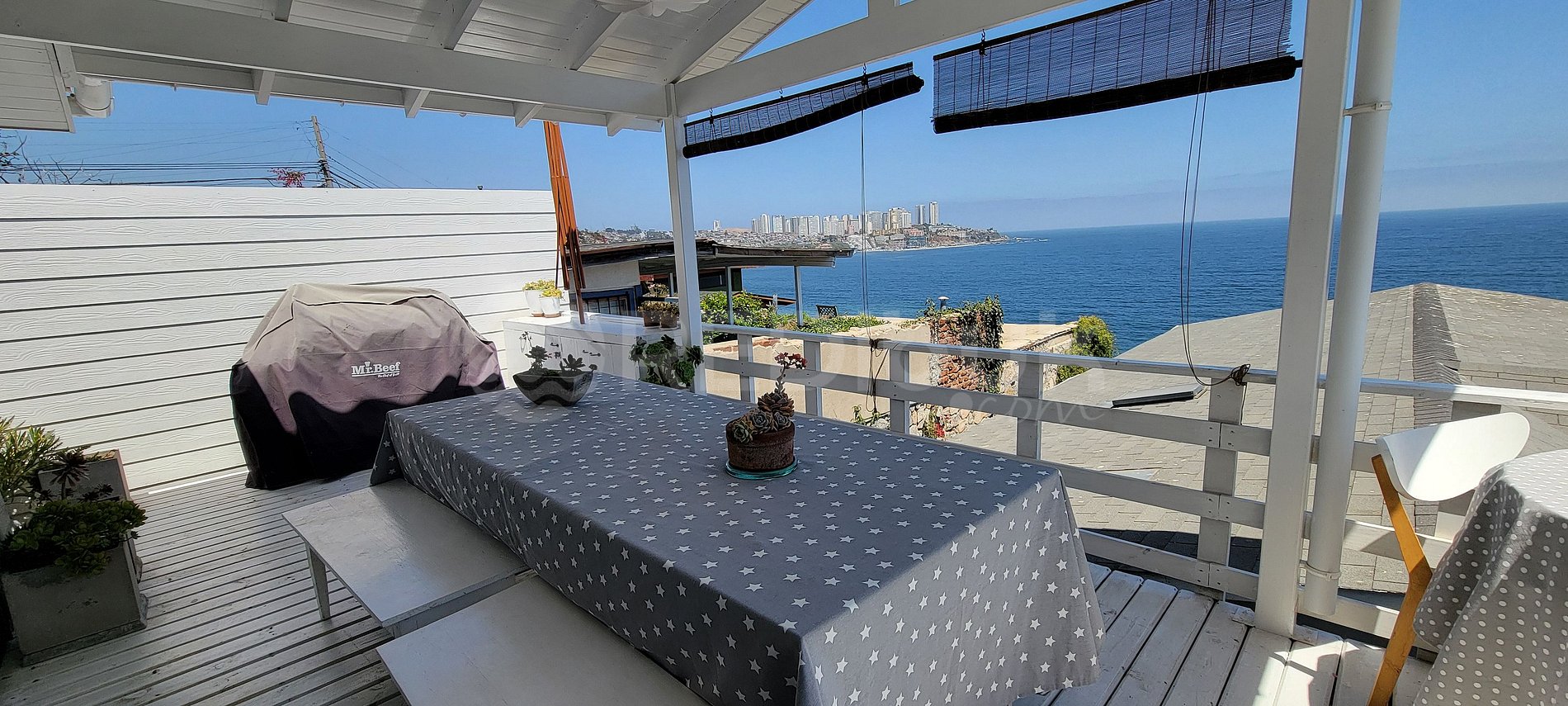Increíble casa de 3 dormitorios y 2 baños para 8 personas con una ubicación estratégica y vista panorámica espectacular a la playa Amarilla, la que se encuentra a 5 minutos caminando desde la casa. Es el lugar perfecto para múltiples deportes como surf, bicicleta, trote y caminatas a lo largo de toda la costanera (Avenida Borgoño) . Un lugar perfecto para descansar y disfrutar a la familia ya que concón sigue siendo un balneario tranquilo y seguro para descansar en familia.