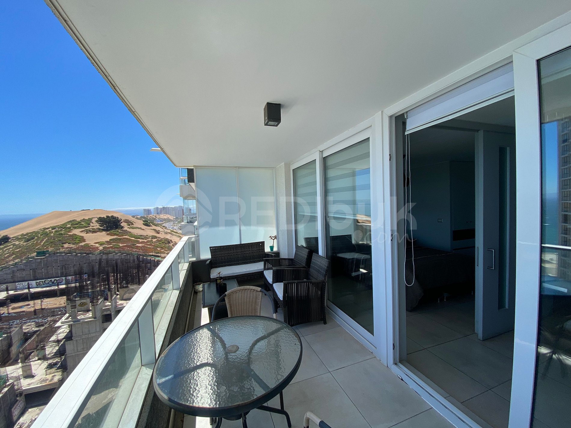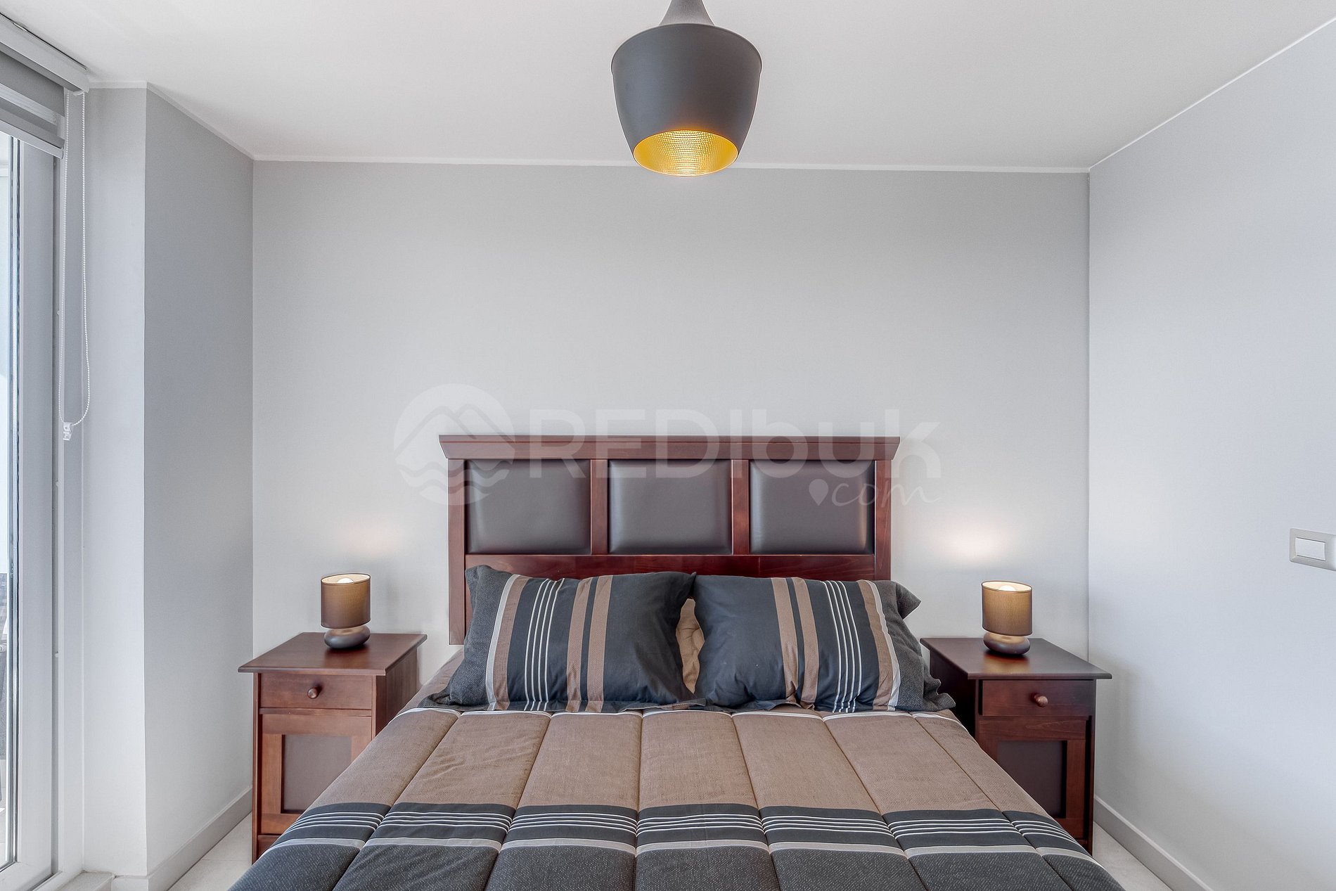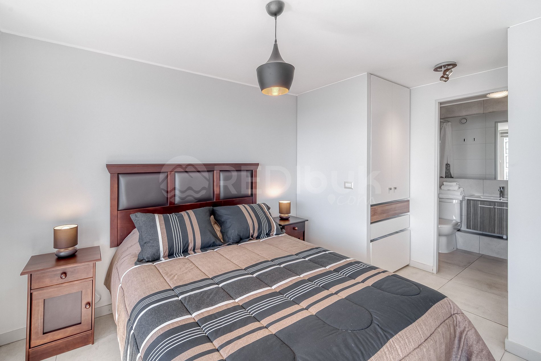 This charming one-bedroom apartment with ocean views in Reñaca Norte is the perfect place to enjoy a relaxing vacation by the beach. Located in a modern building, it is located on a high floor, which guarantees impressive views of the Pacific Ocean from all areas of the apartment.