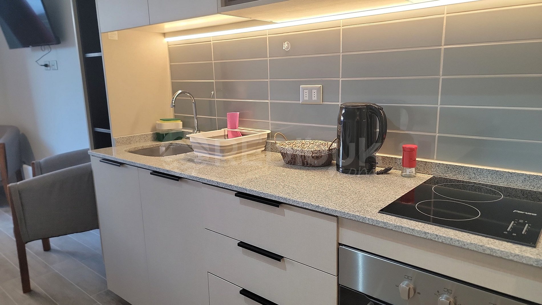 El departamento es completamente nuevo: cama con respaldo iluminado y enchufes integrados, terraza privada, cocina equipada, TV y Wi-Fi de alta velocidad. En verano, la piscina recibe sol todo el día y la terraza con árboles ofrece una agradable sombra natural. Tendrás acceso completo tanto al studio como a las instalaciones del edificio, según disponibilidad y normas del lugar.
