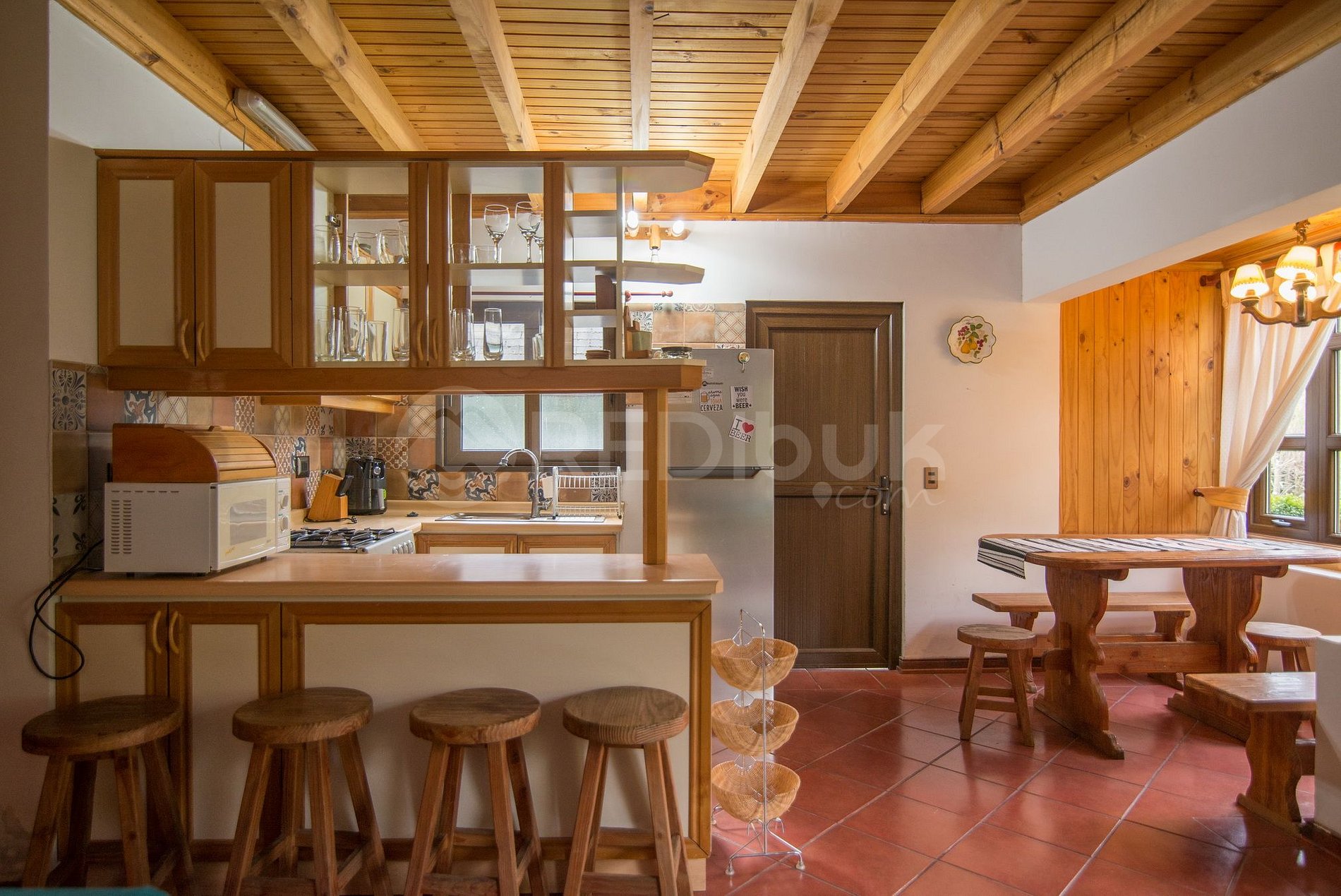 House fully equipped to receive up to eight people, with three bedrooms, two bathrooms and large terrace. It is located between Villarrica and Pucón, a few minutes from commerce, supermarkets, restaurants, etc.