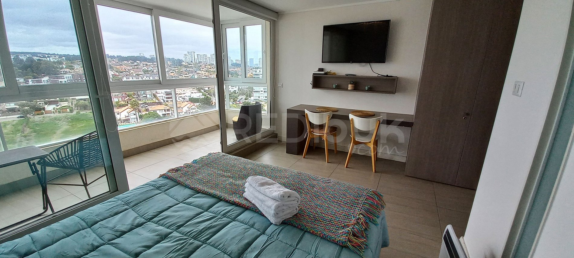 Hermoso y moderno departamento de un ambiente, ubicado en el exclusivo sector de Costa de Montemar, Concón. Su diseño funcional y luminoso lo convierte en el espacio perfecto para una estadía cómoda y tranquila, ideal para parejas o viajes individuales.