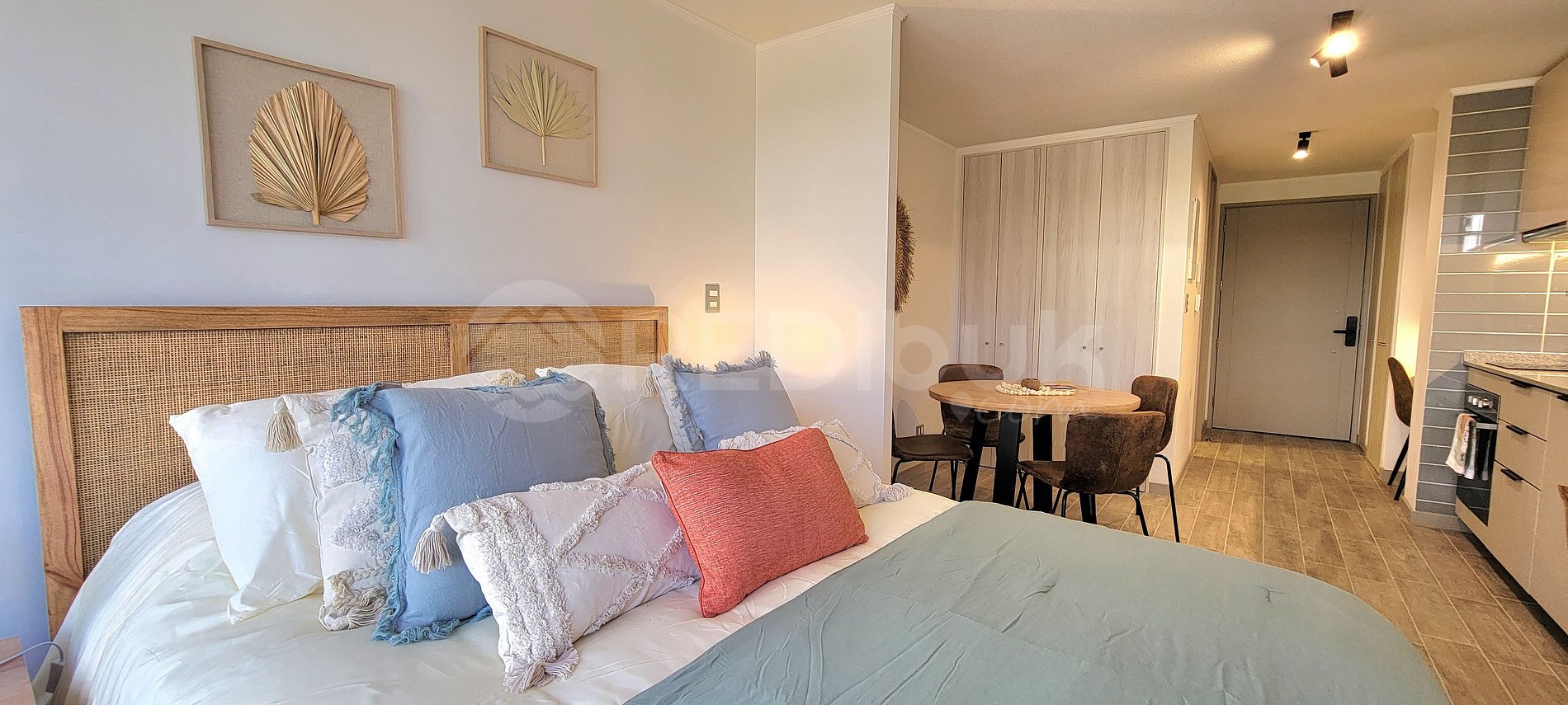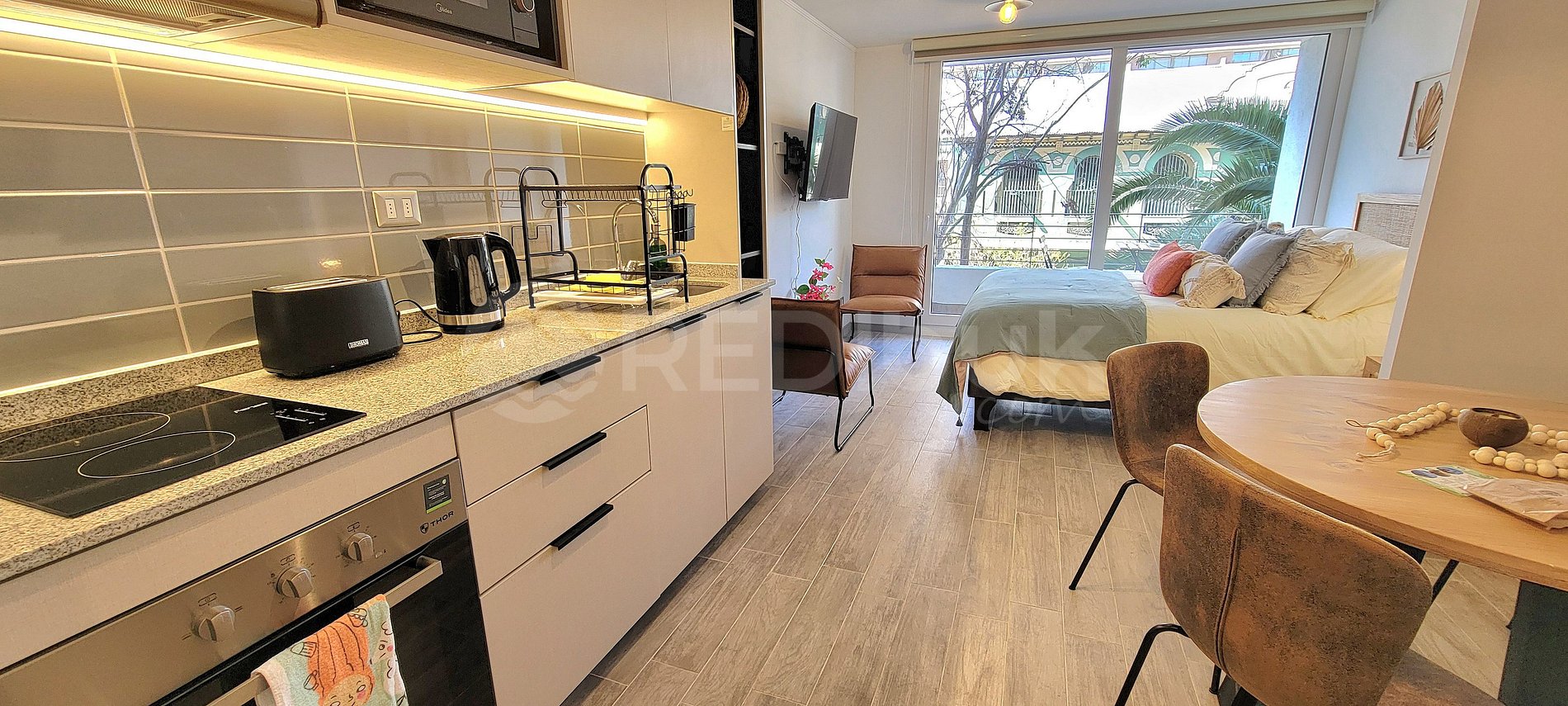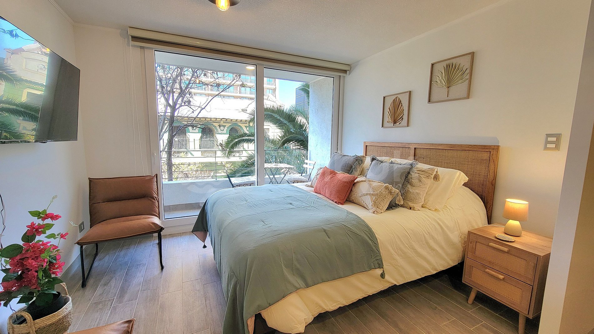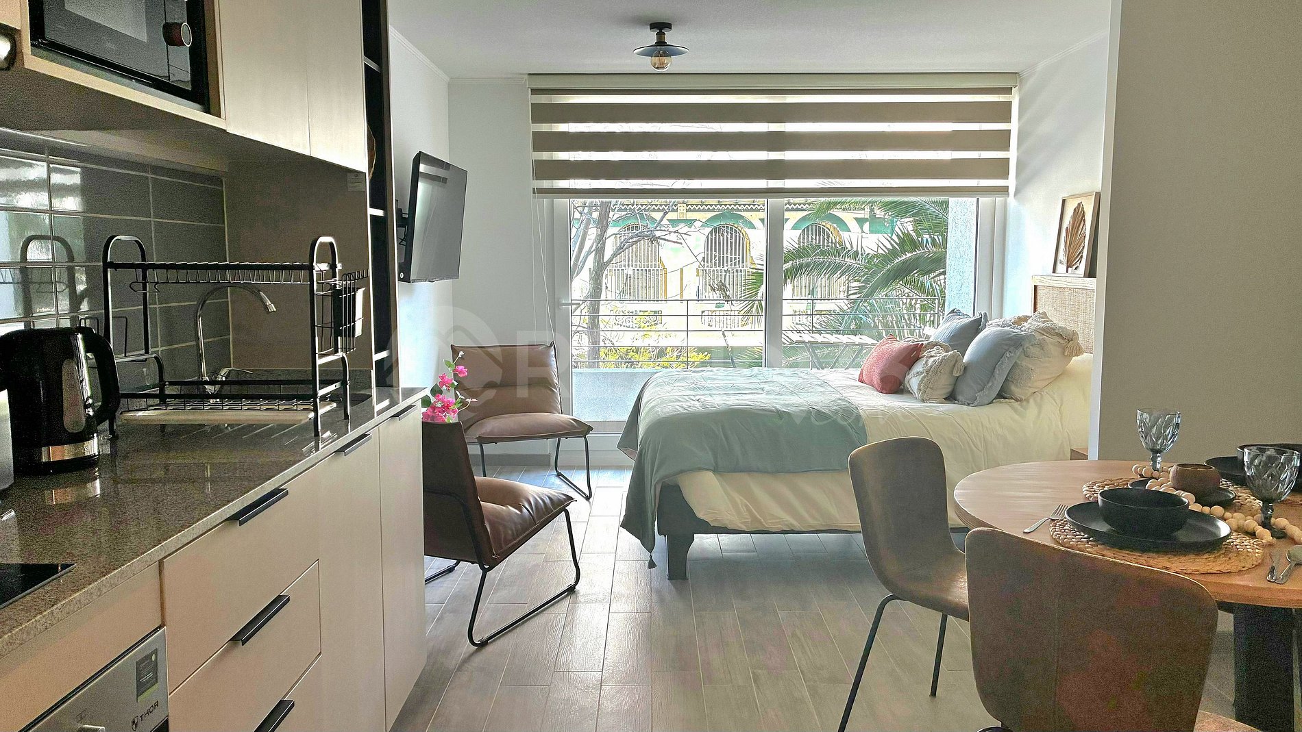 Tiene todo lo necesario para sentirse como en casa: Wi-Fi, cafetera, TV, cómoda cama, terraza y cocina full equipada. Un espacio ideal para relajarse luego de un día de recorrer la ciudad. Cuenta con piscina en azotea con sol durante todo el día (verano), ideal para quienes buscan refrescarse en el calor santiaguino.