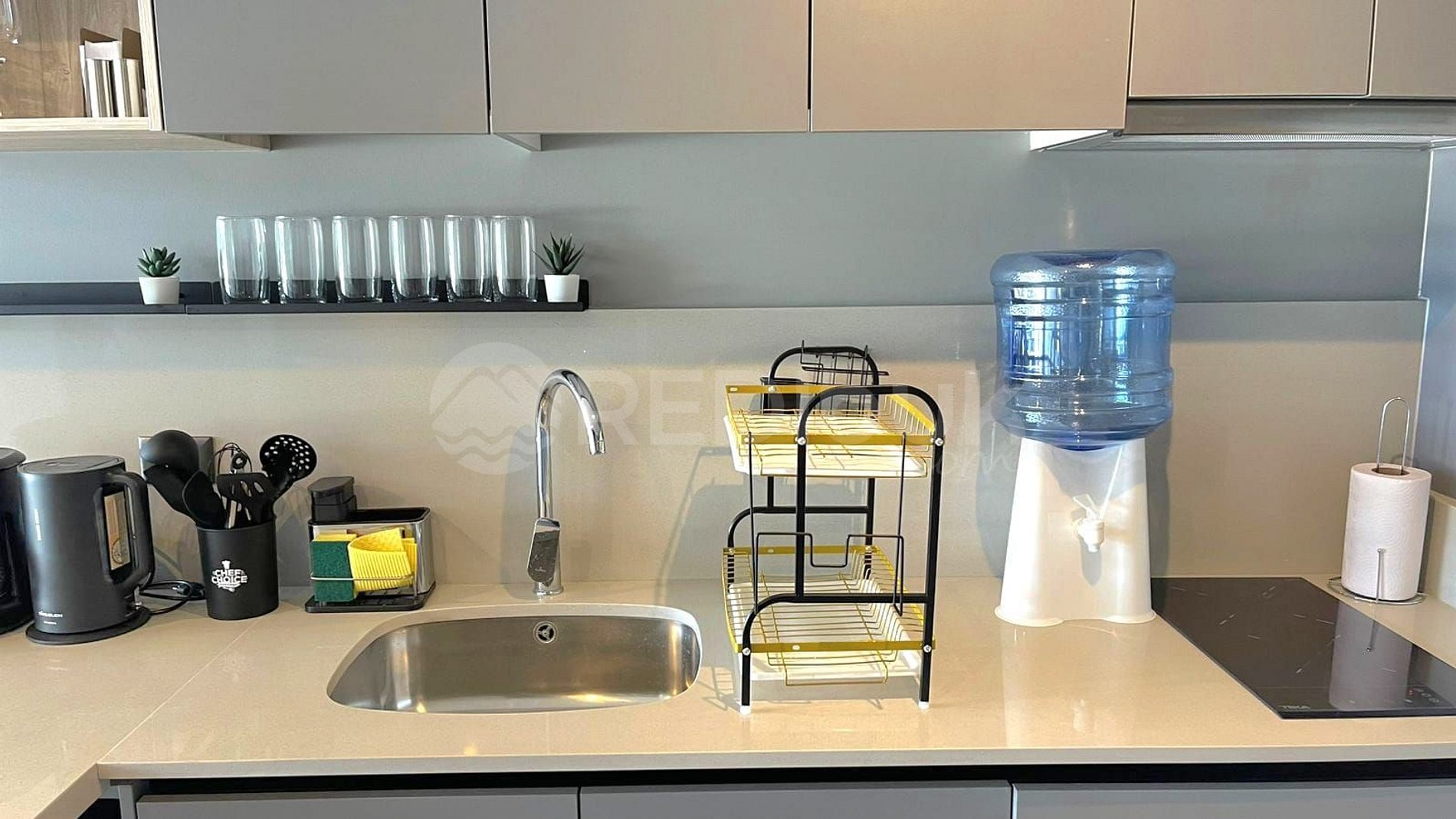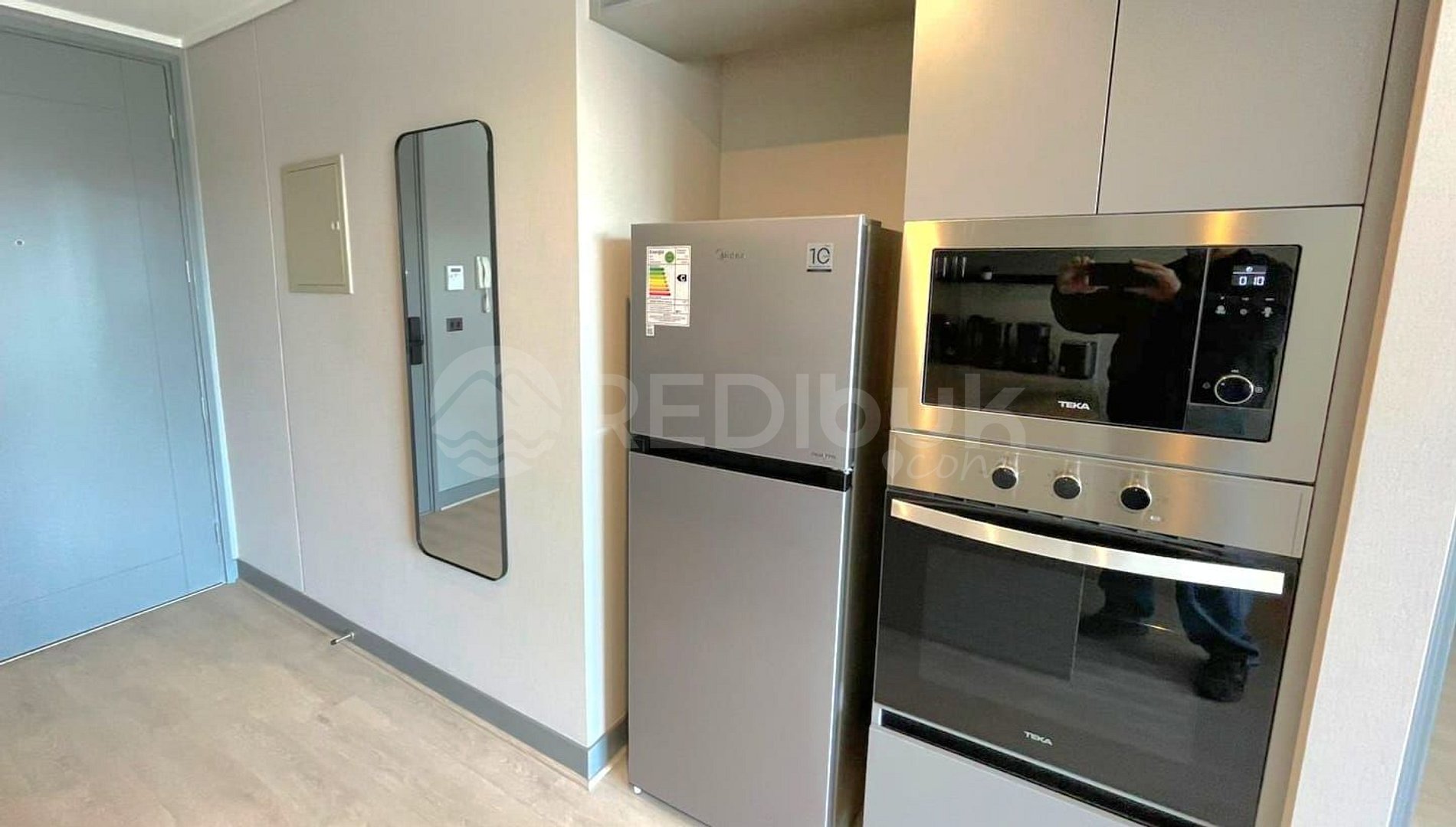 El departamento cuenta con un dormitorio, un baño completo, una cocina integrada totalmente equipada y un acogedor living que se conecta con una agradable terraza, perfecta para disfrutar de luz natural durante el día. Su distribución está diseñada para aprovechar cada espacio de manera eficiente, logrando un ambiente cómodo y práctico tanto para estadías cortas como largas.