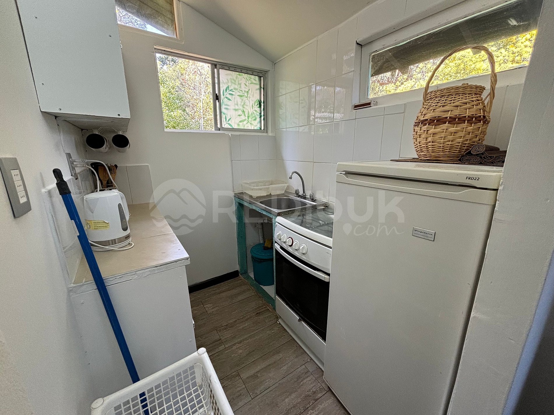 La cabaña se encuentra en un sector muy tranquilo de Laguna Verde, a pasos de negocios y a 450 metros de la playa.