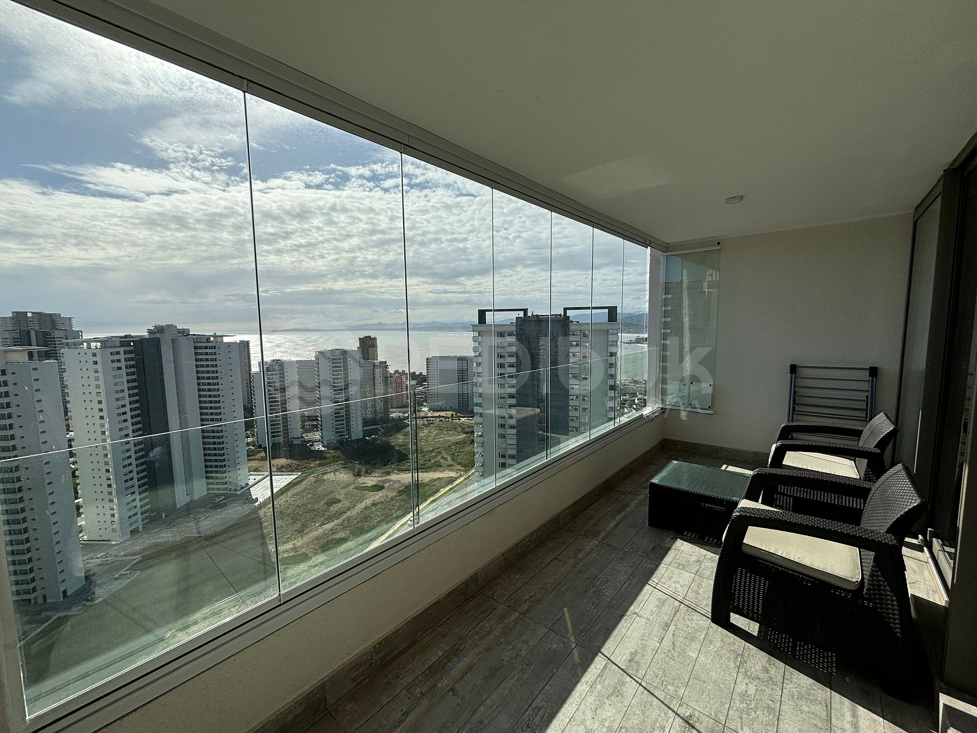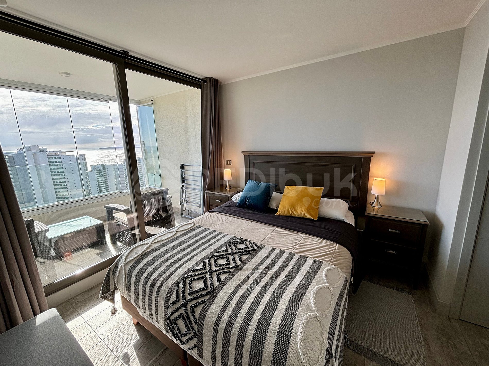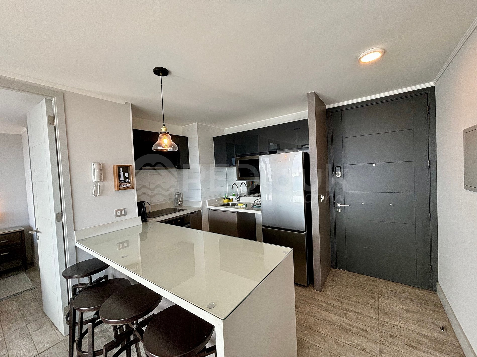 Nuevo proyecto Wave Concón año 2023, El departamento está en el piso 25, cuenta con dos dormitorios, dos baños, living, cocina americana, terraza cerrada con vidrio panorámico y todo el equipamiento necesario para una estadía cómoda, tranquila y sin preocupaciones.