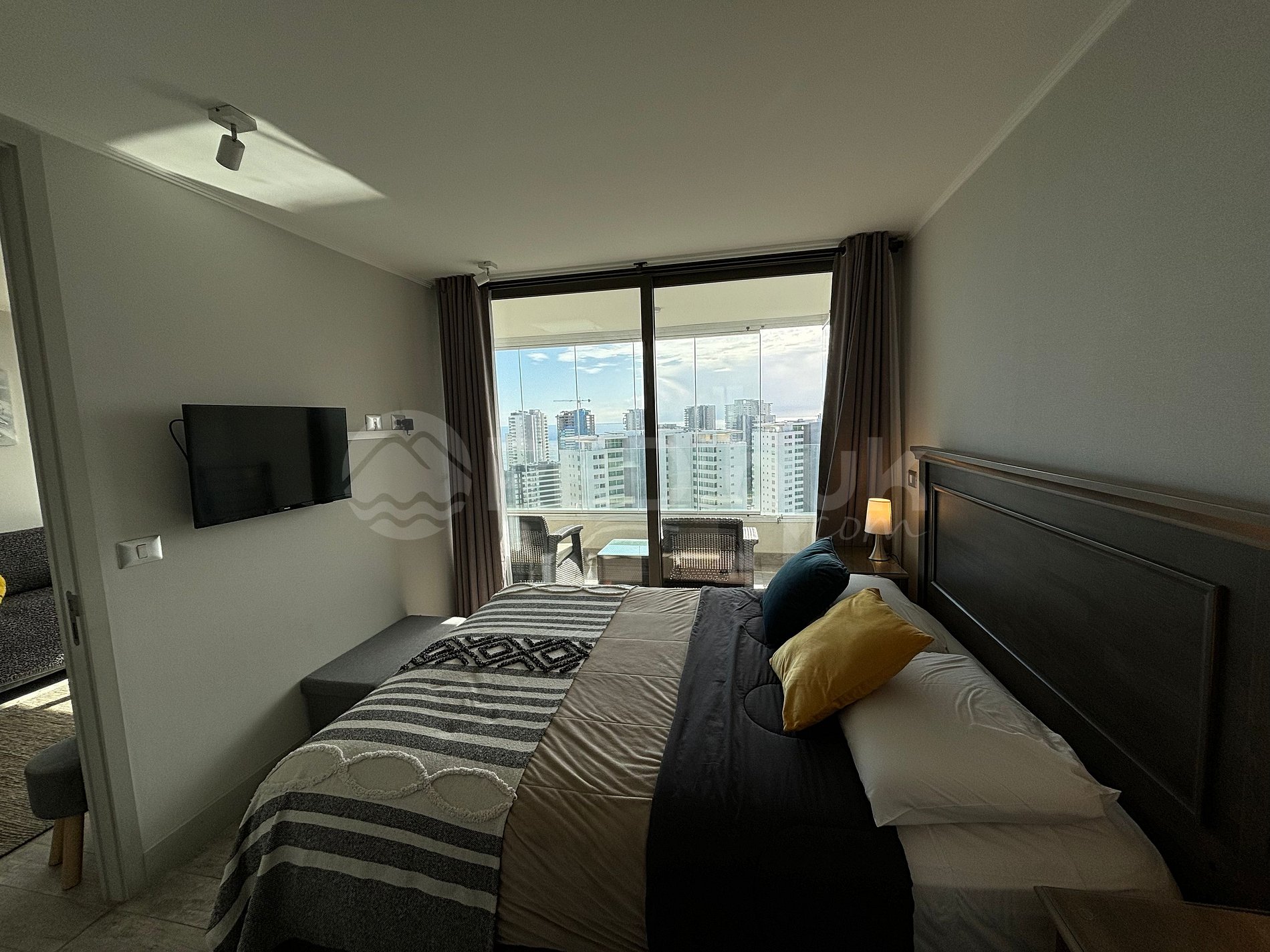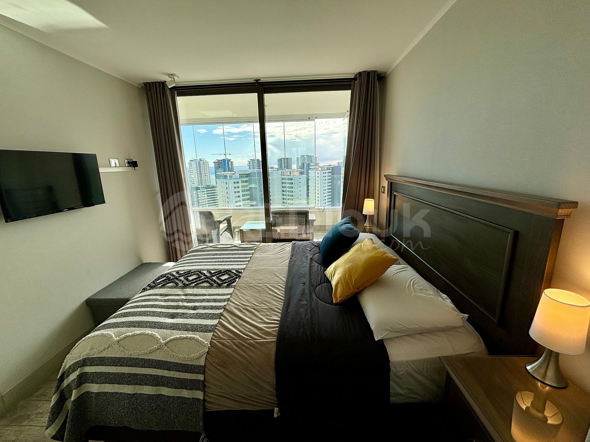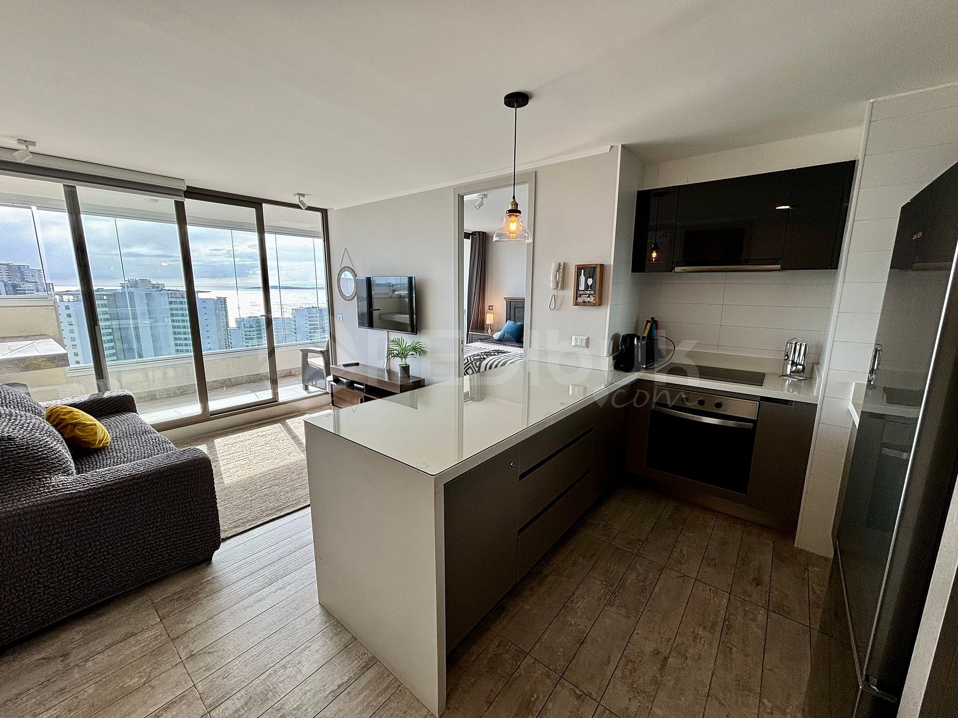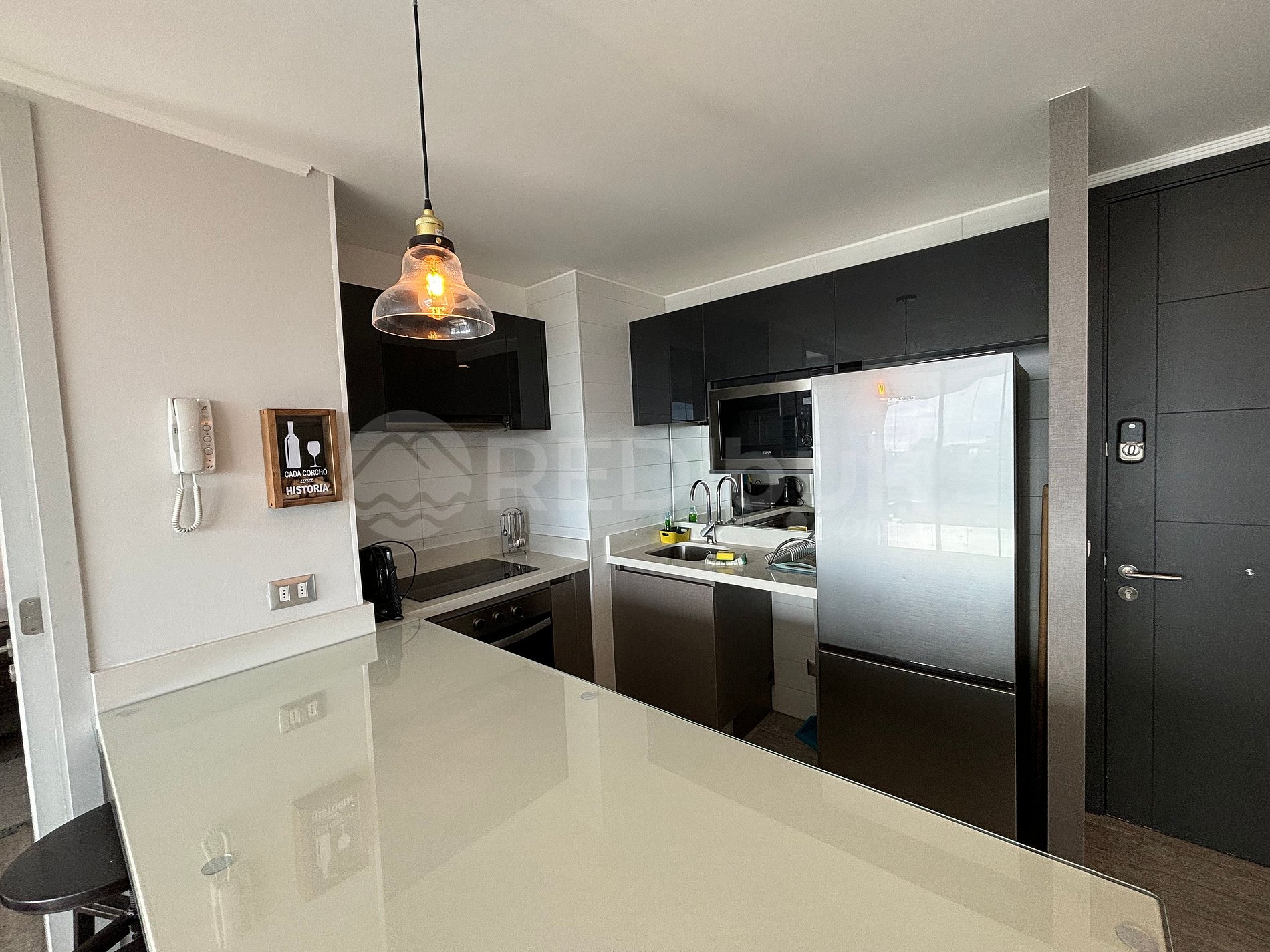Nuevo proyecto Wave Concón año 2023, El departamento está en el piso 25, cuenta con dos dormitorios, dos baños, living, cocina americana, terraza cerrada con vidrio panorámico y todo el equipamiento necesario para una estadía cómoda, tranquila y sin preocupaciones.