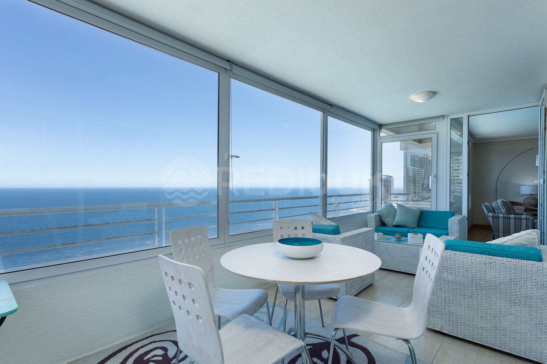 Amplio y hermoso departamento equipado para recibir hasta 7 personas. Con una hermosa vista al mar desde un amplio ventanal desde el living y una terraza cerrada, que permitirá poder disfrutar de ella en todas las temporadas.