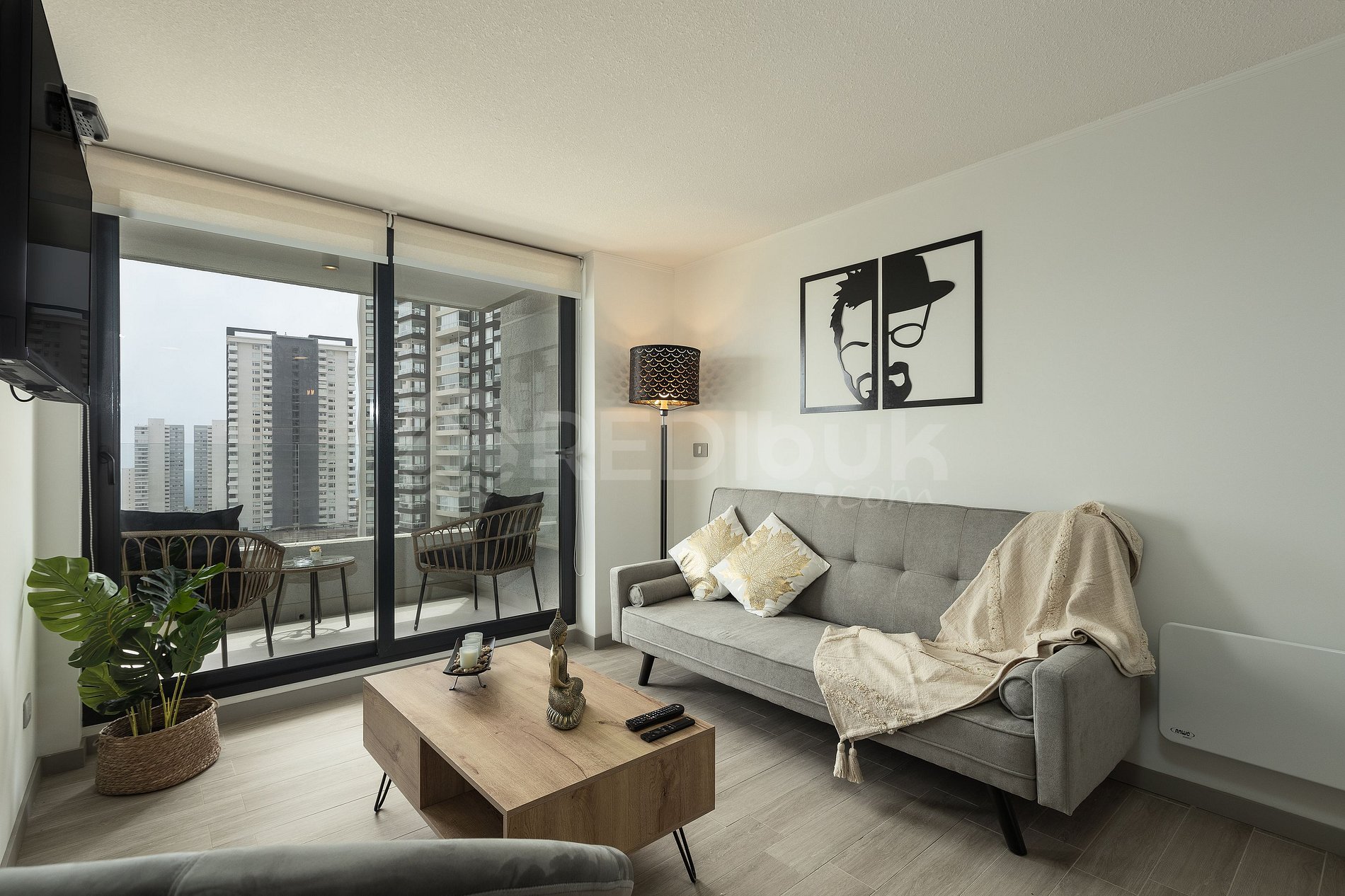 Espacio ideal para 4 personas y con decoración única y vanguardista. Su terraza amplia, permitirá disfrutar de una vista amplia y parcial al mar y bahía de Concón.