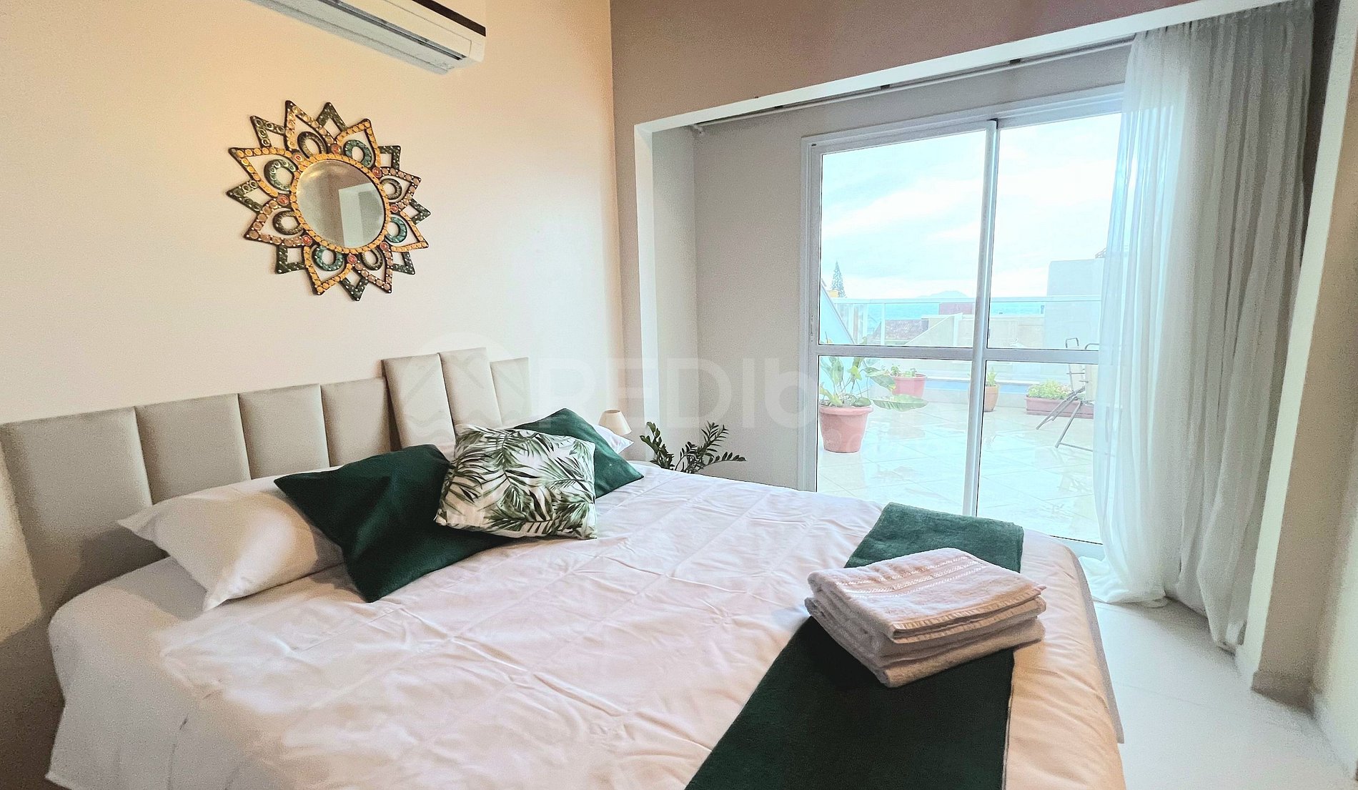 Departamento Duplex recién remodelado cuenta con 2 dormitorios, 2 baños con capacidad de hasta 6 personas, a 2 cuadras de la playa, terraza vista al mar, ducha exterior, parrilla, estacionamiento privado, cerca de todo el comercio y en barrio seguro y tranquilo. Importante cuenta con escalera tipo Santos Dumont para acceder al dormitorio principal, cama matrimonial, baño y terraza con vista la mar. Primer piso con dormitorio capacidad de 3 camas, baño, cocina, comedor, parrilla y sala de estar.