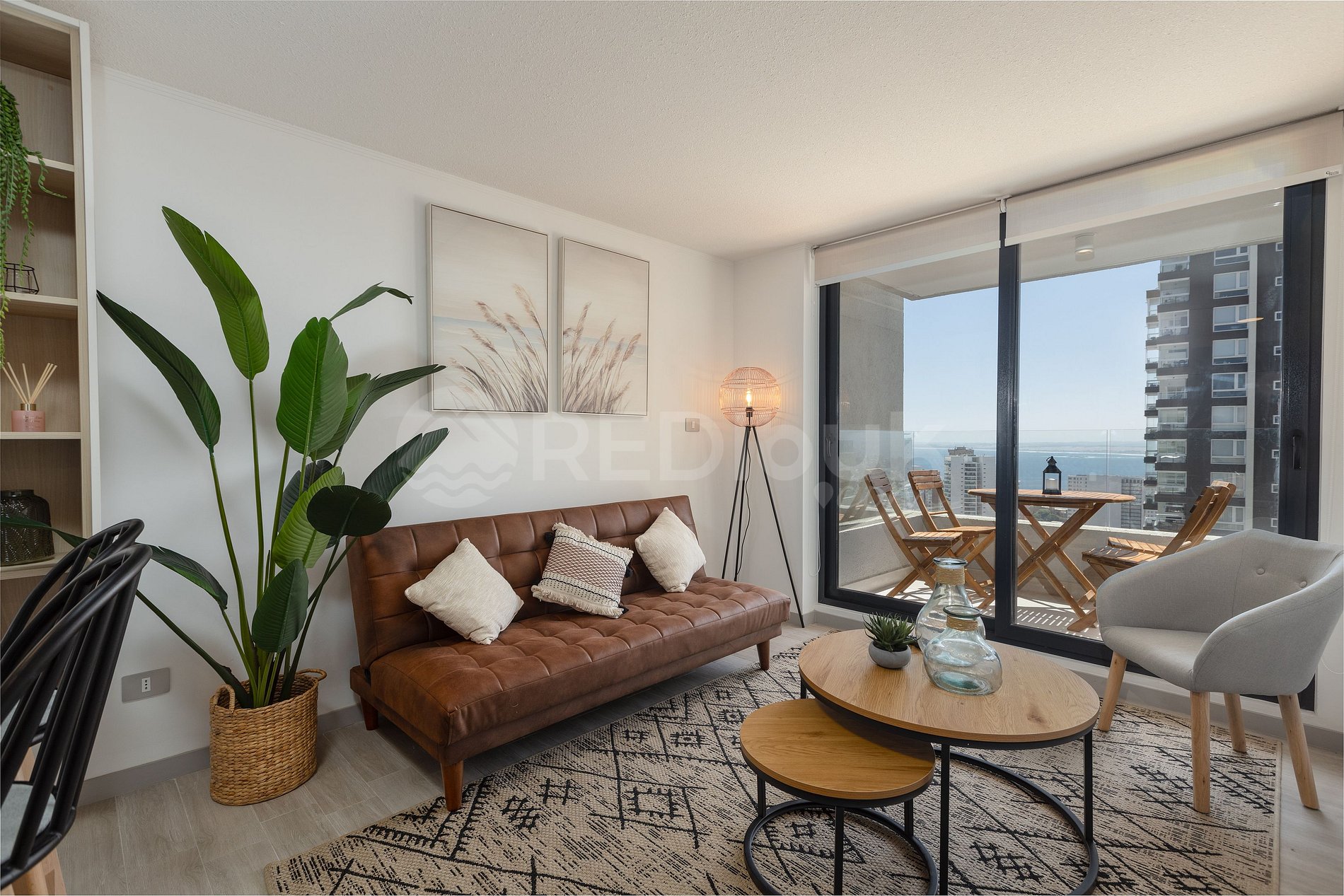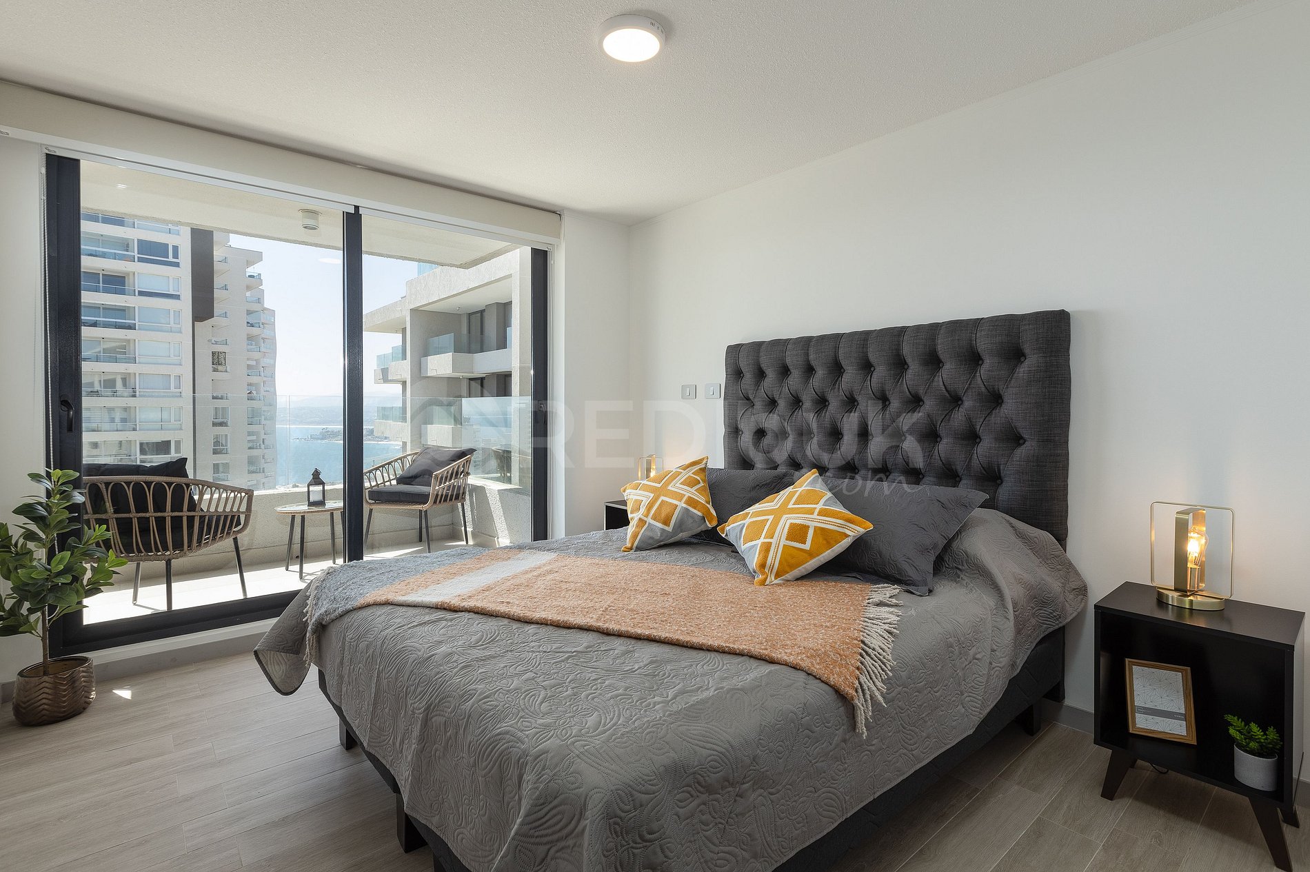 Espacio es ideal para cinco personas y su decoración es hermosa. Su terraza amplia, permitirá disfrutar de una vista amplia y parcial al mar y bahía de Concón.