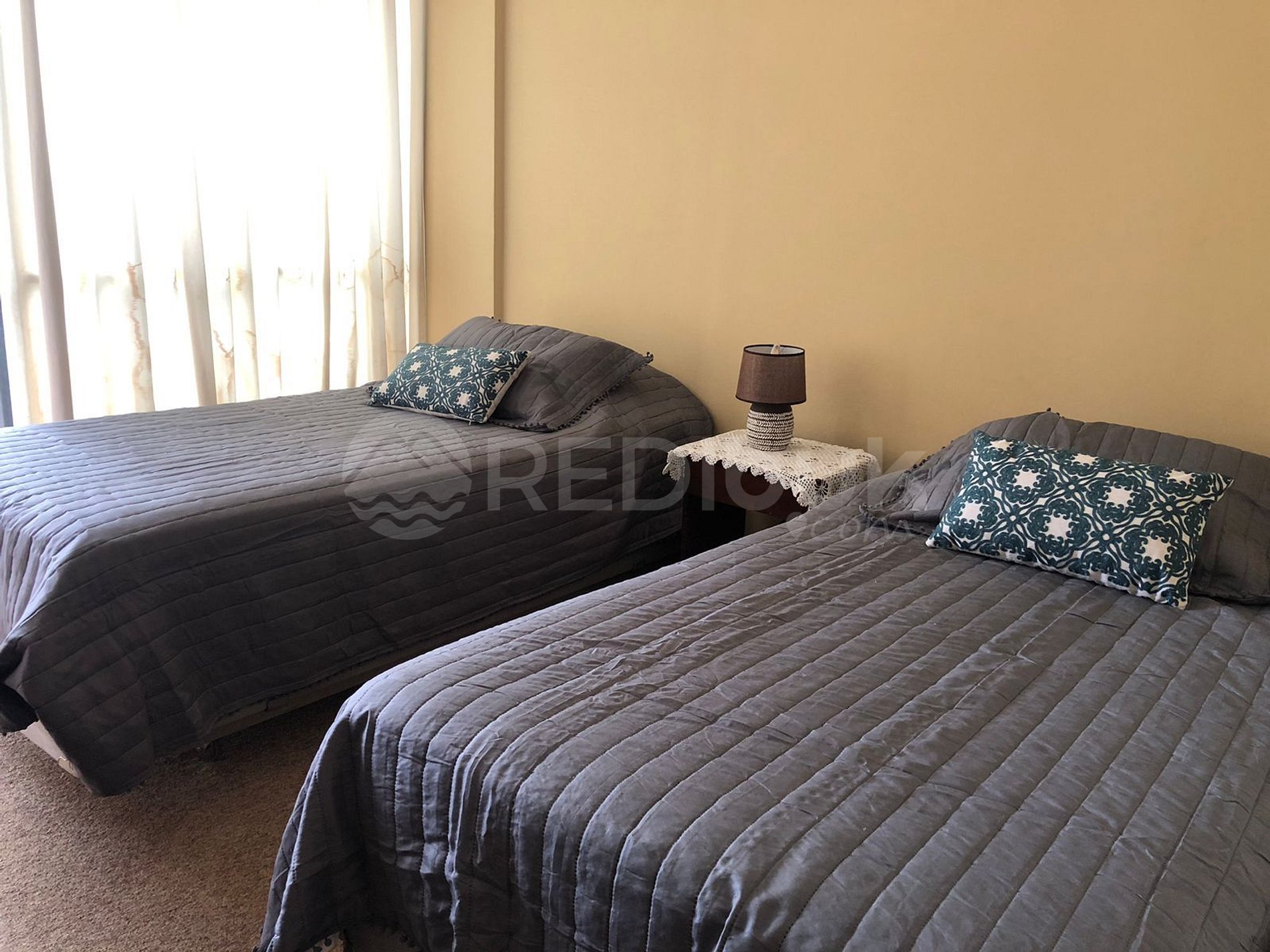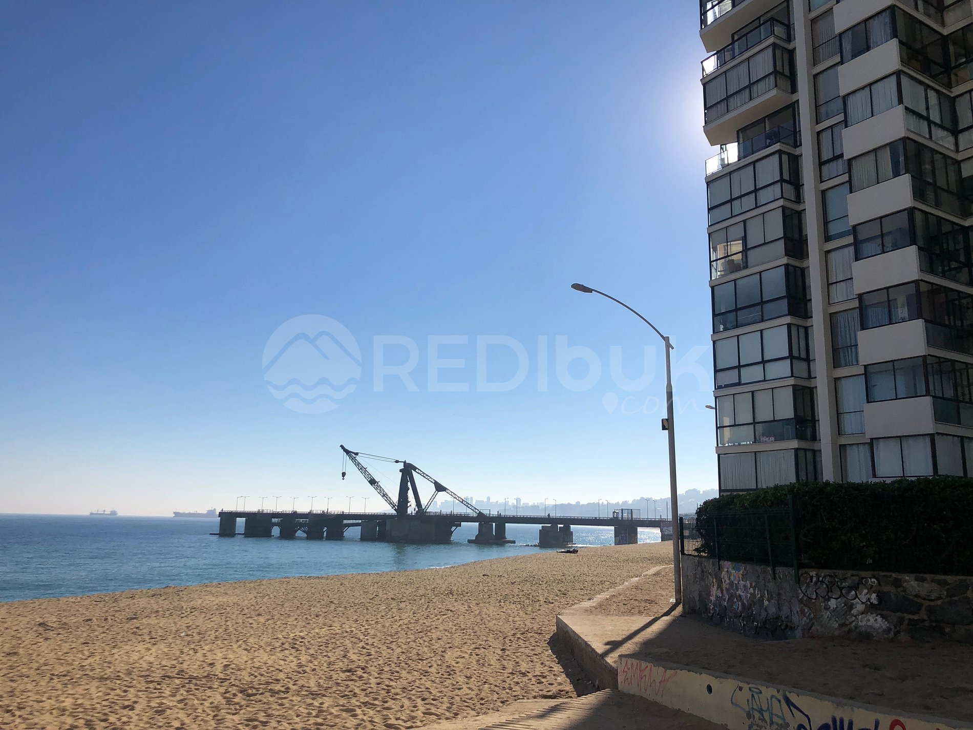 El departamento cuenta con cuatro camas, distribuídas en dos habitaciones y un baño. La hermosa vista panorámica al mar y al Muelle Vergara desde el balcón es espectacular.