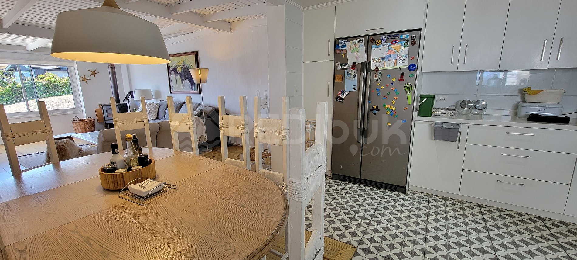 Disfruta un momento de relajo a pasos de la playa con una hermosa vista y un jardín maravilloso, piscina, parrilla, la casa posee calefacción por medio de una chimenea a leña en el living y muchos espacios distintos para poder disfrutar la gastronomía local junto a tu familia.