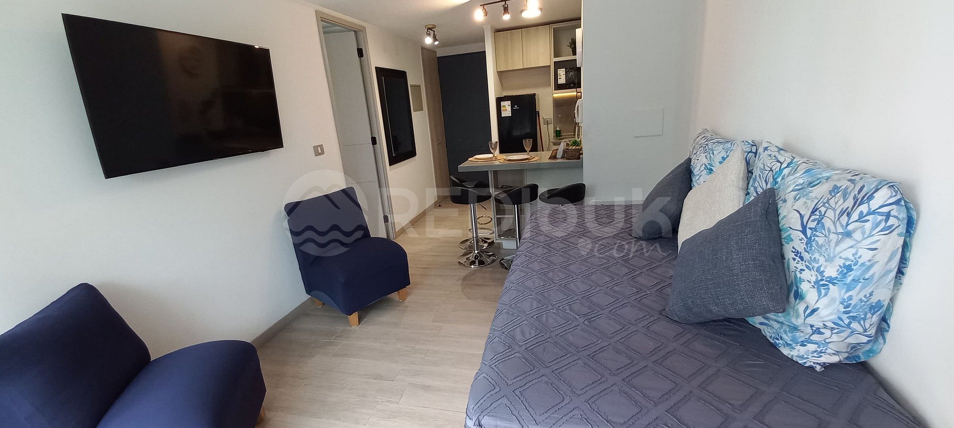 Espacio es ideal para dos hasta cuatro personas, ya que cuenta con cama matrimonial y una cama nido. Departamento con todo lo necesario para poder disfrutar un fin de semana en la playa, caminando al campo dunar con unas puestas de sol impresionantes. A 5 minutos de playa lilenes y varios centros comerciales. Un parque muy seguro para salir a caminar a sólo 20 metros del acceso.