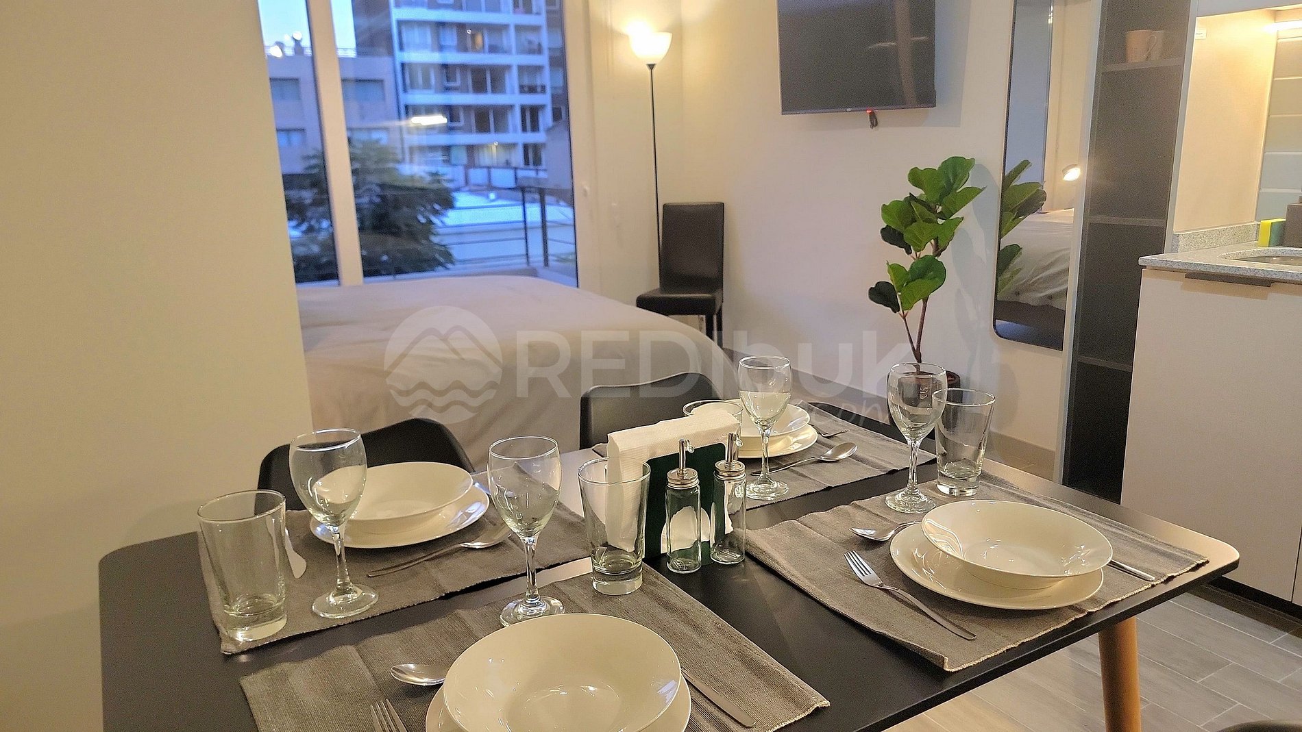 El edificio cuenta con excelentes instalaciones para combinar relajo y productividad: piscina en la azotea con vista panorámica, gimnasio, áreas verdes, lavandería y sala de reuniones. Un entorno ideal para quienes desean aprovechar al máximo su estadía en la ciudad.