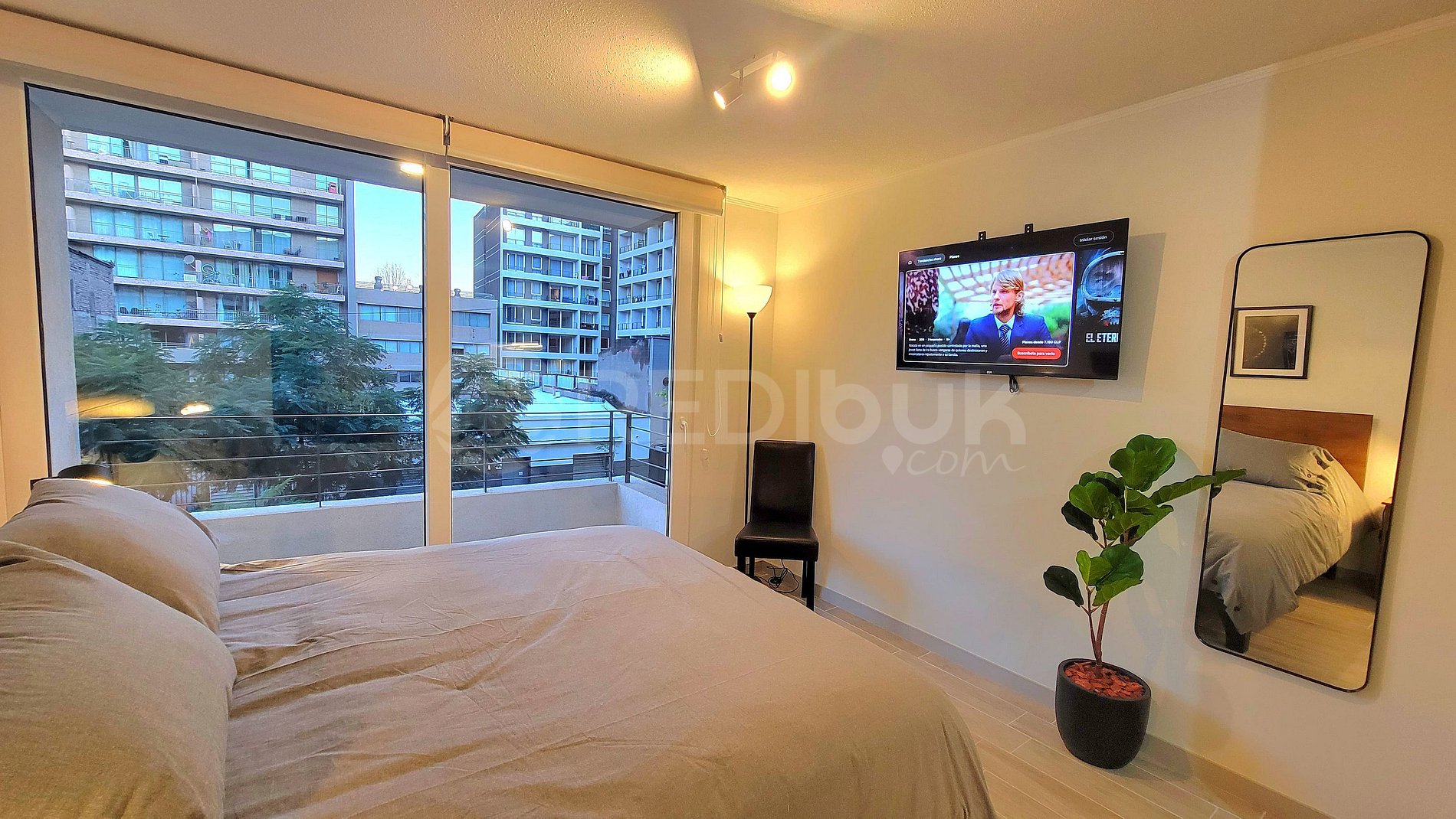 Vive una experiencia acogedora en este funcional departamento, perfecto para parejas que visitan Santiago. Ubicado en un moderno edificio del tranquilo barrio Club Hípico, ofrece todas las comodidades necesarias para disfrutar de una estadía placentera, ya sea por turismo, trabajo o descanso.