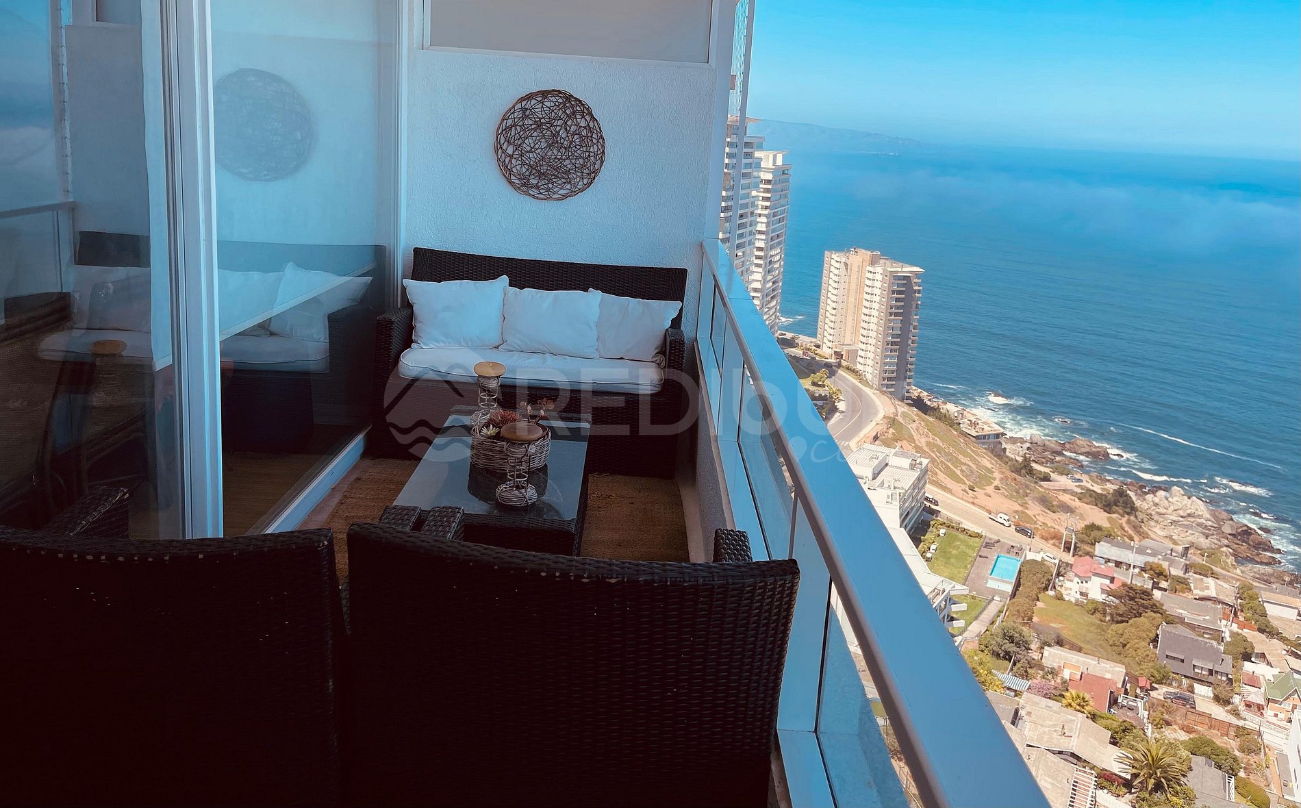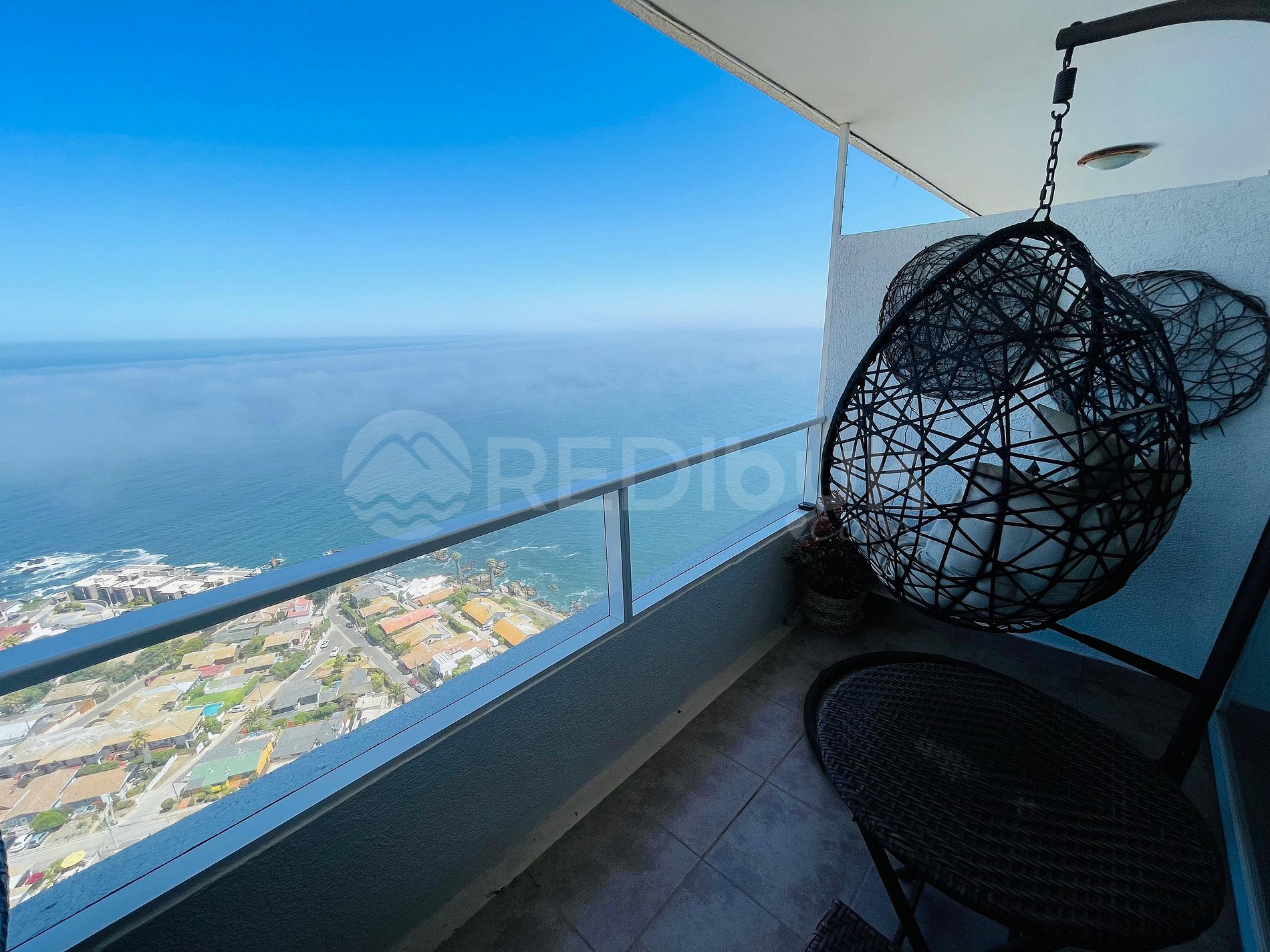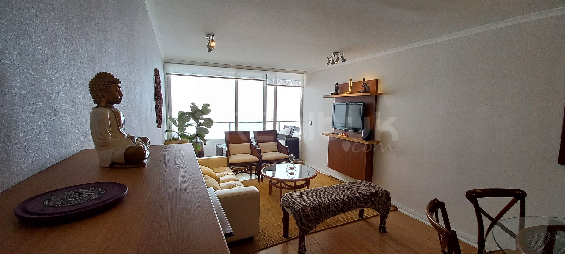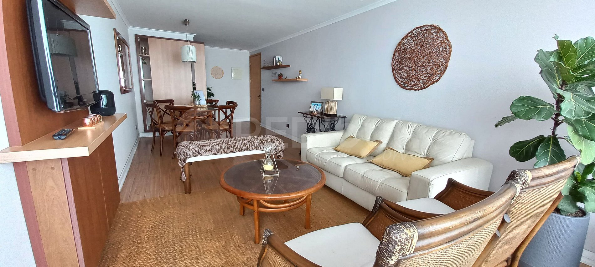 Disfruta de una estadía confortable en este luminoso y moderno departamento ubicado en una de las zonas más exclusivas y residenciales de Concón: Costa de Montemar. Su principal atractivo es la espectacular vista panorámica al mar, visible desde prácticamente todas sus ventanas.