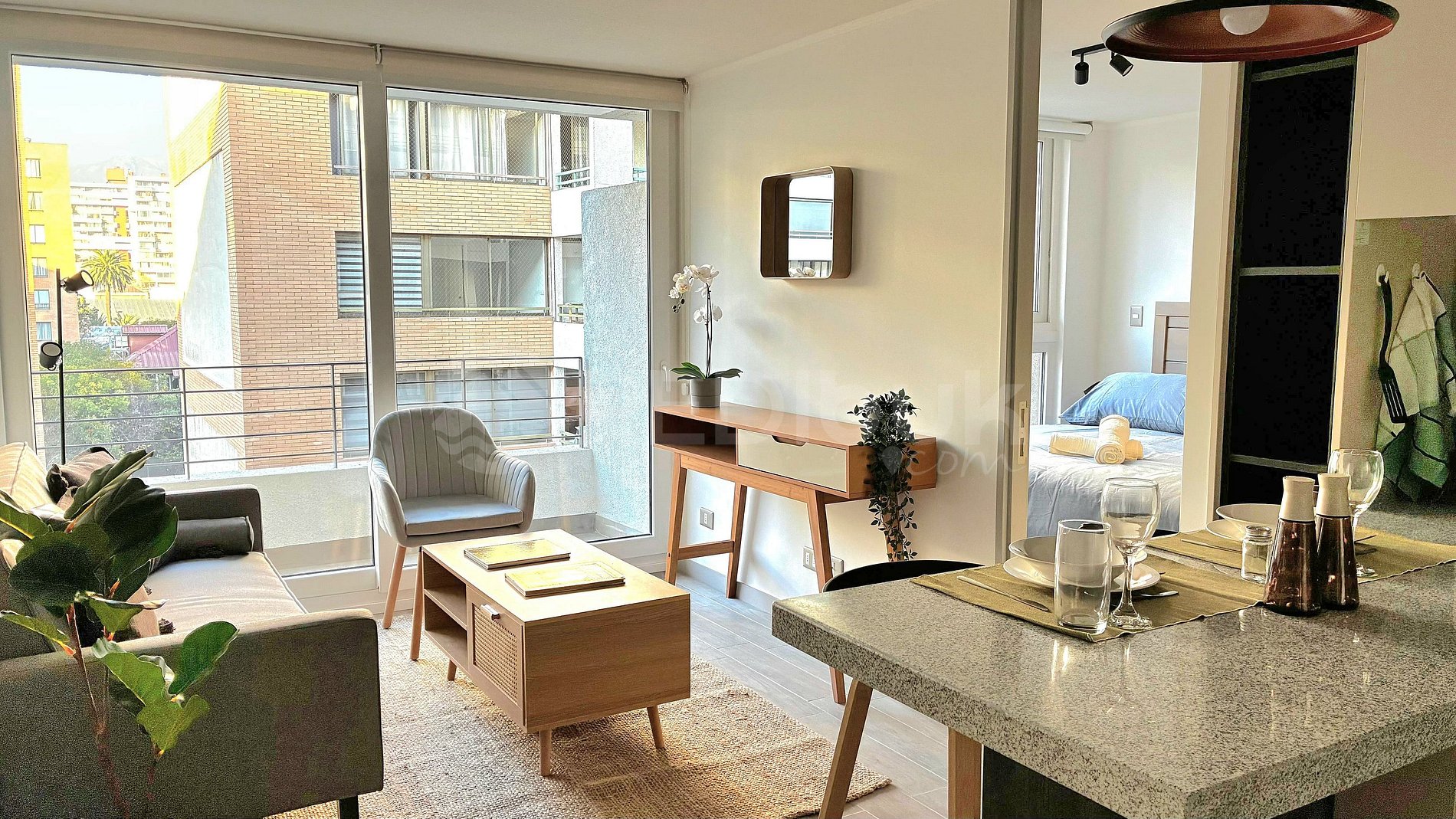 El departamento se ubica a tan solo 2,5 km del Terminal de Buses Alameda y a 18 km del Aeropuerto Internacional de Santiago.