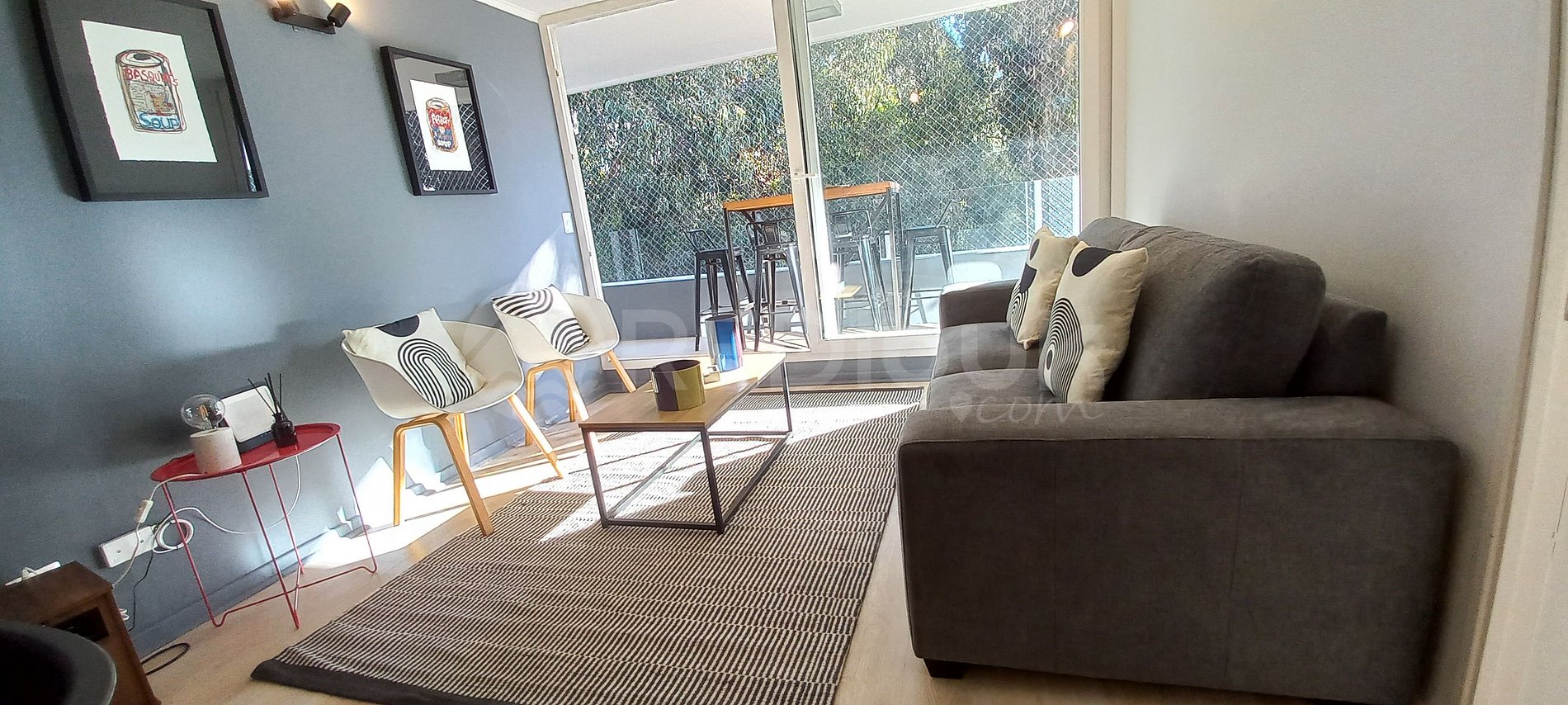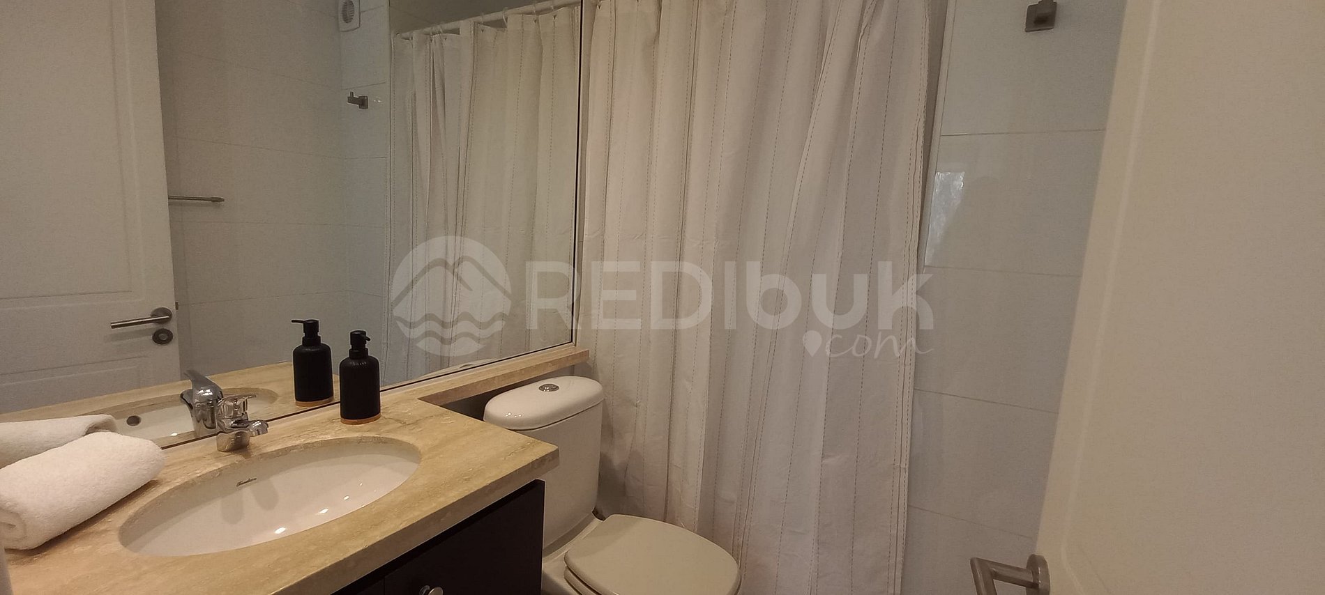 El departamento cuenta con dos dormitorios en suite, ideal para familias o grupos de hasta cinco personas. Su espacioso living comedor se conecta con una cómoda terraza, perfecta para descansar o disfrutar de un atardecer. Cuenta con gran terraza de uso exclusivo, equipada con parrilla, gran mesa y espacio para disfrutar.