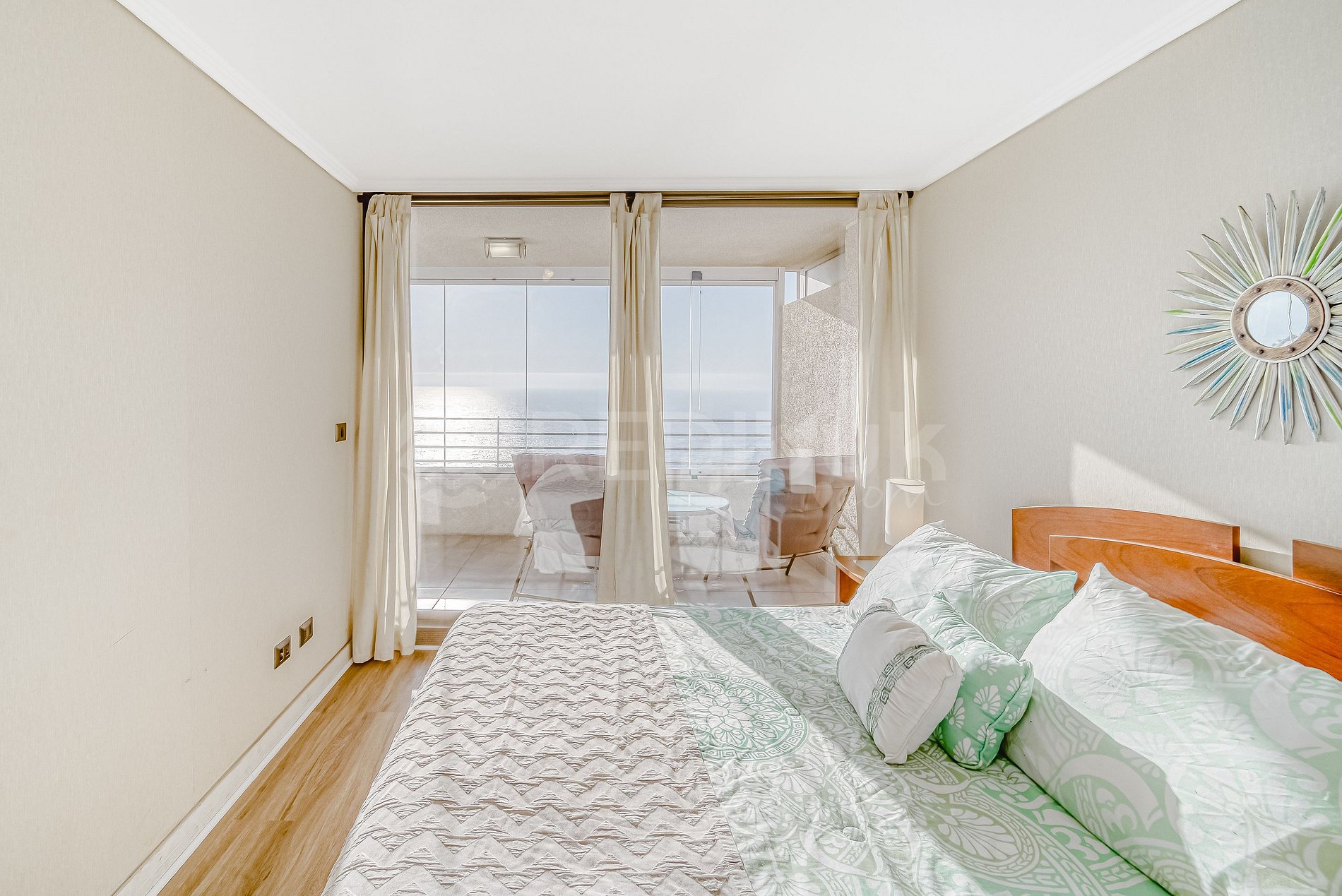 Departamento con una gran hermosa y panorámica vista al mar y a las dunas de Concón. Su terraza se encuentra cerrada con vidrio panorámico, lo que permitirá que disfrutes de ella en toda temporada.