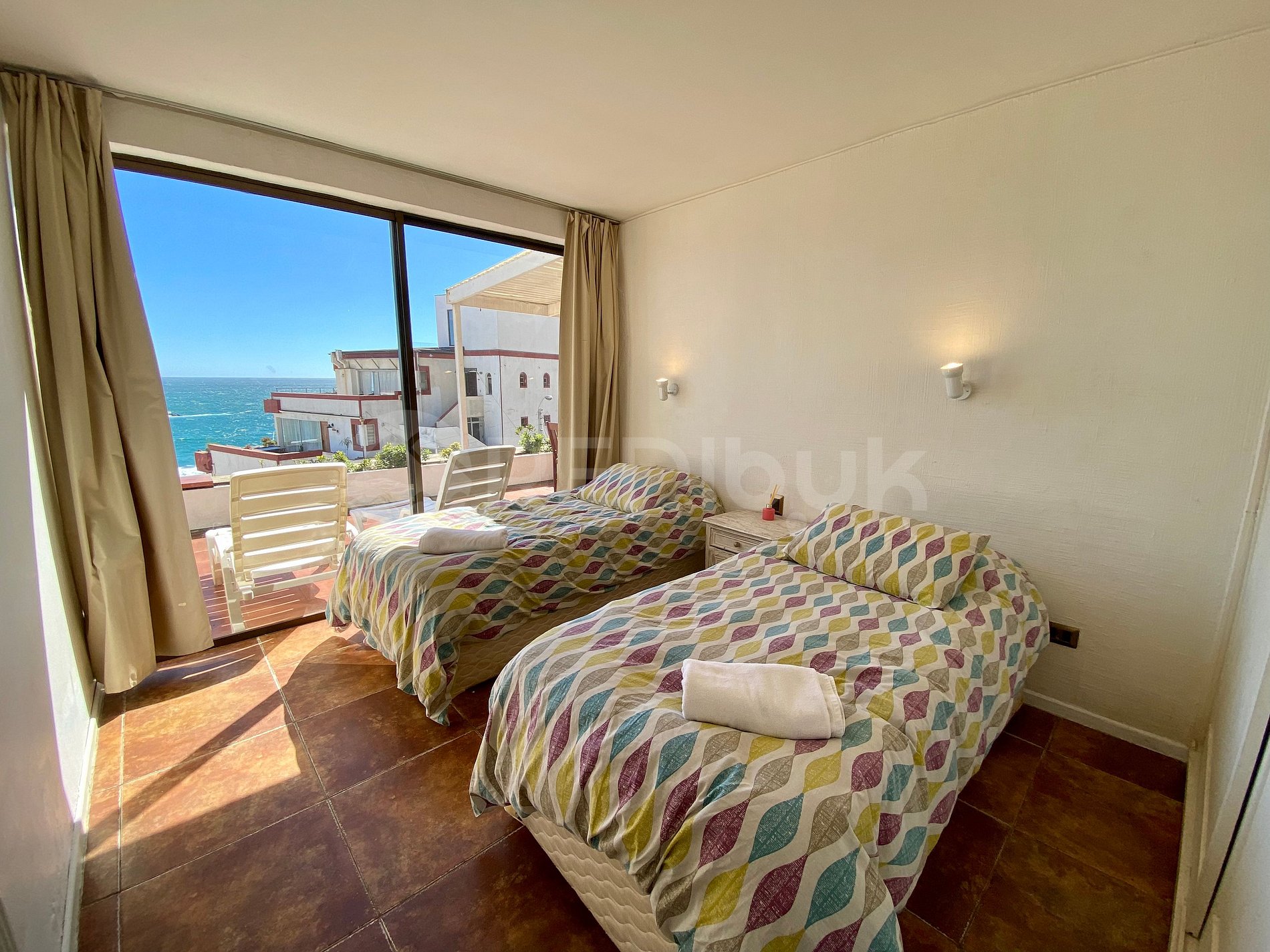 El departamento está frente al sector 5 de Reñaca, cuenta con tres dormitorios, dos baños, living-comedor, cocina cerrada, terraza abierta con parrilla y todo el equipamiento necesario para una estadía cómoda, tranquila y sin preocupaciones .