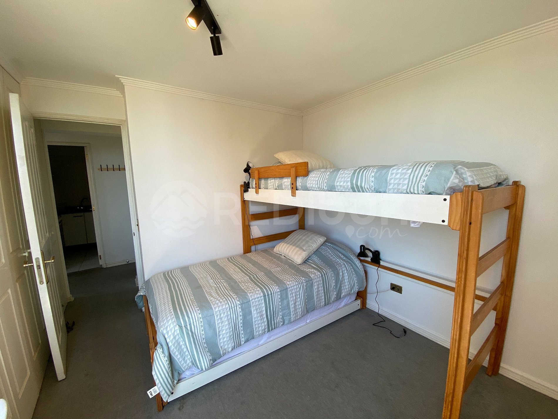Hermoso departamento full equipado ubicado en el exclusivo barrio de Jardín del Mar. Cuenta con un dormitorio con cama de dos plazas en suite y otra dormitorio con tres camas individuales, Wi-fi con acceso a la plataforma de Netflix, cocina full equipada, estacionamiento privado, terraza con una hermosa vista despejada y vista parcial al mar.