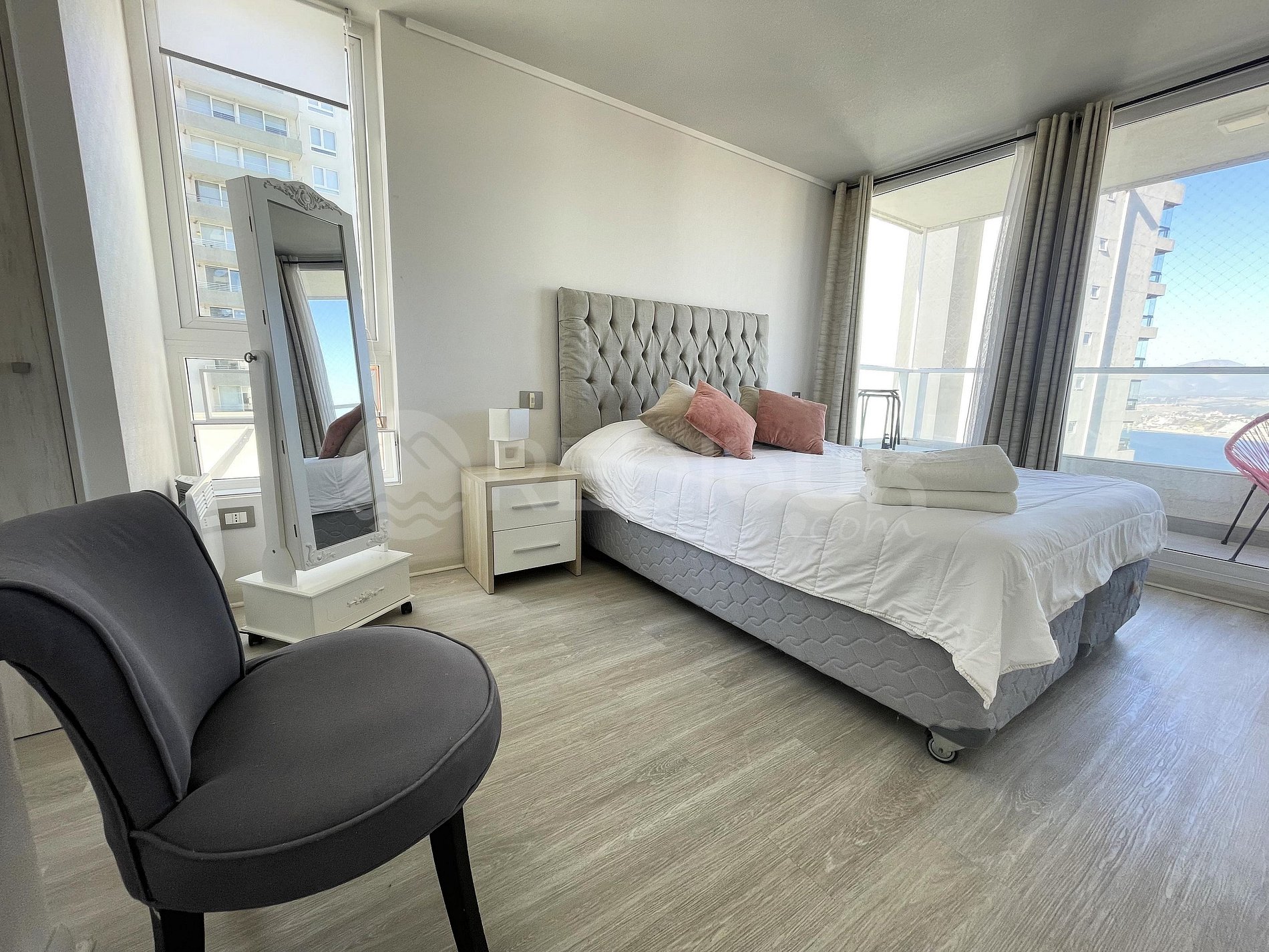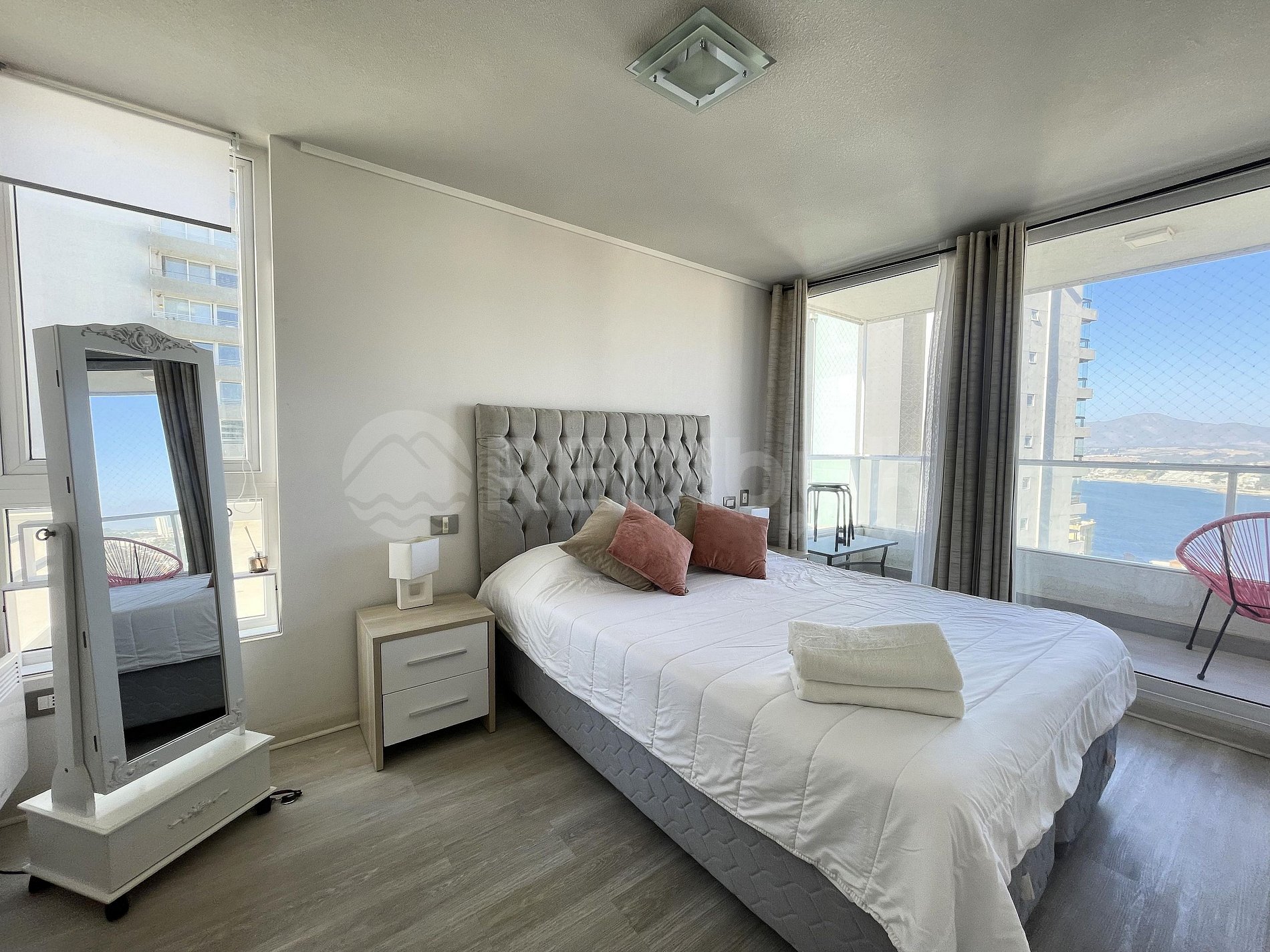 Disfruta de este luminoso departamento para 3 personas, diseñado para tu comodidad. Totalmente equipado, cuenta con una cocina completa y una amplia terraza con silla colgante para relajarte mientras disfrutas de vistas al mar. Ubicado en Costa de Montemar, un tranquilo barrio residencial, con comercios y cafeterías a pasos.