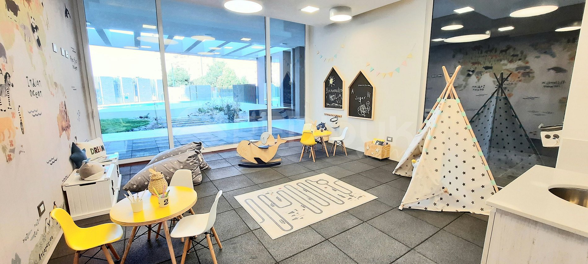Dentro del condominio, cuenta con piscina temperada, sala de juegos para niños, gimnasio y lavandería. El uso de áreas comunes está sujeto a disponibilidad por temporada, mantención y normas del edificio.
