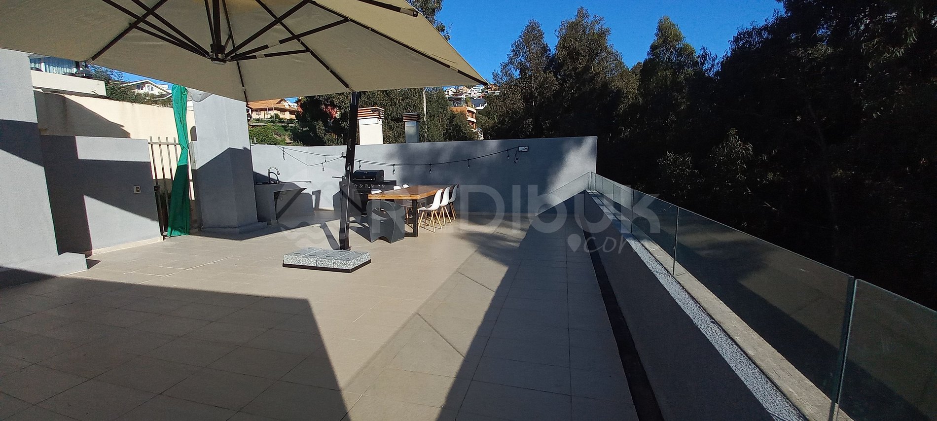 El departamento cuenta con una Terraza de libre uso sobre el departamente, cuenta con una mesa y un quitasol grande para poder disfrutar del aire libre.